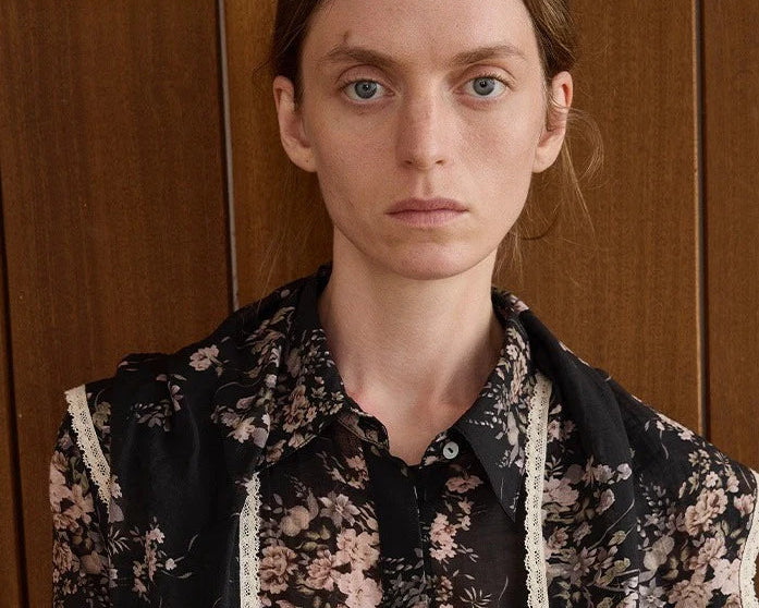 Lyocell blend vintage floral print shirt with a scarf | 2 color