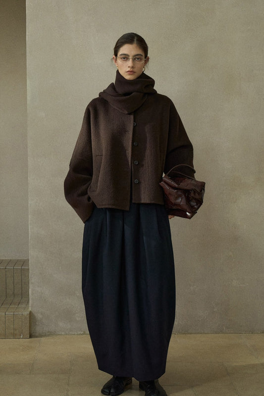 Cotton blend paper-like texture cocoon silhouette trench coat