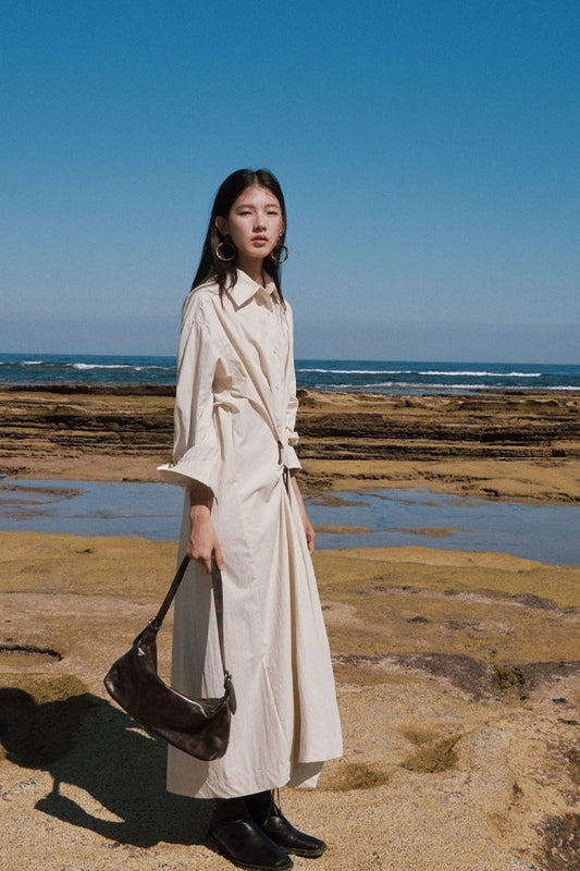 Cotton-nylon knot-belt minimal shirtdress | 3 color