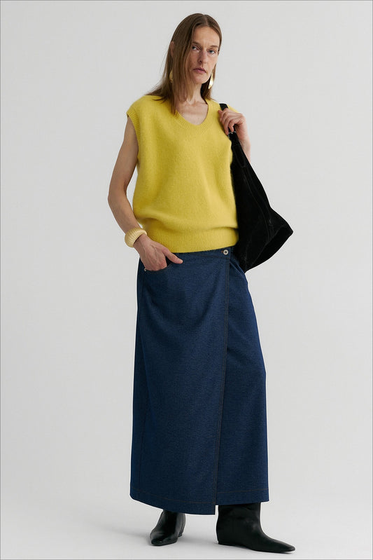Wool-cashmere-silk loose fit V-neck jacket with a scarf