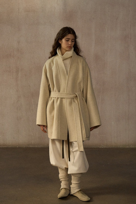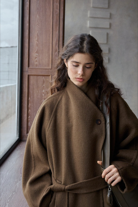 Wool-silk-angora double-faced fabric robe stule coat | 3 color