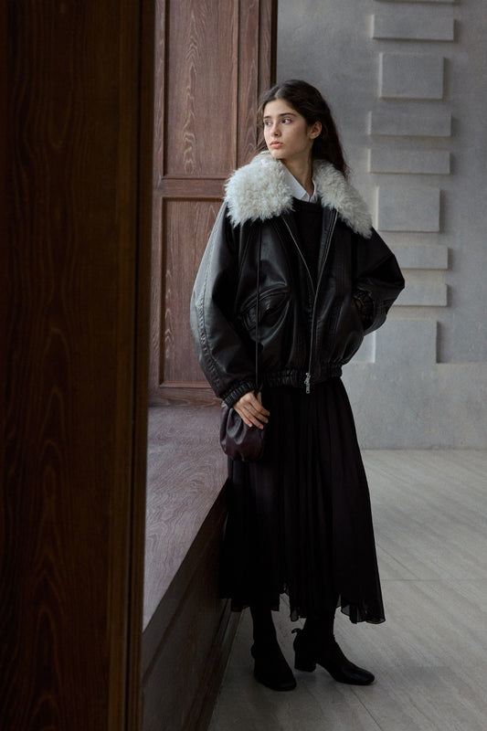 Cozy and chic detachable collar wool-filled PU jacket | 2 color