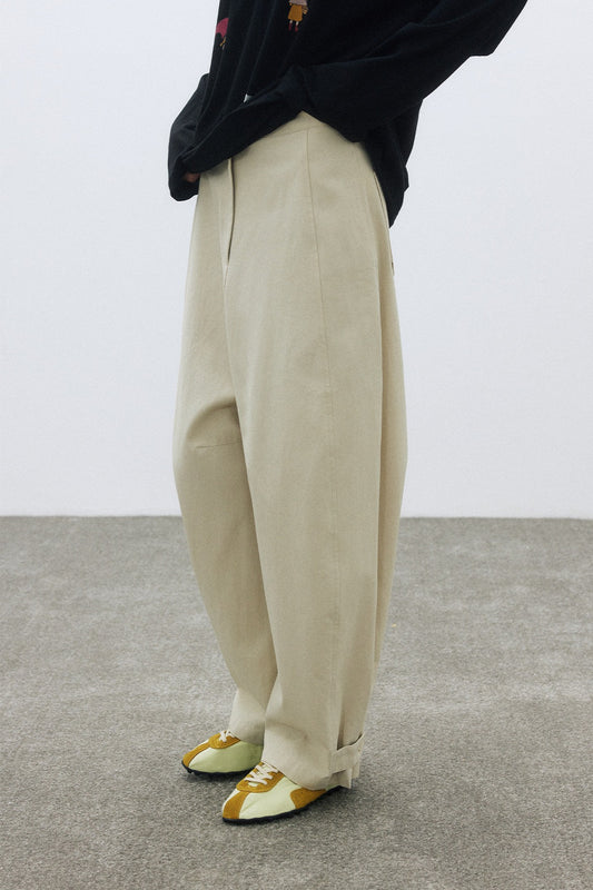 Cotton banana-shape wide-leg pants beige