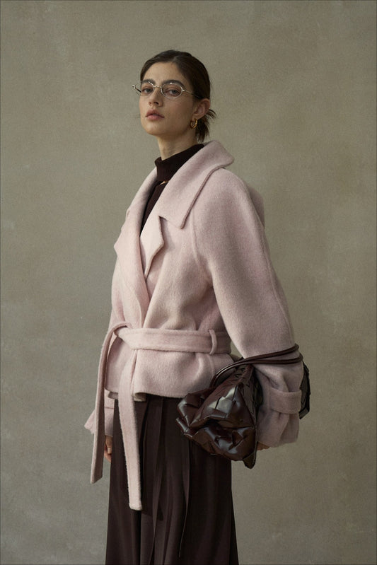 Wool-silk-camel hair cropped jacket with a belt | 3 color