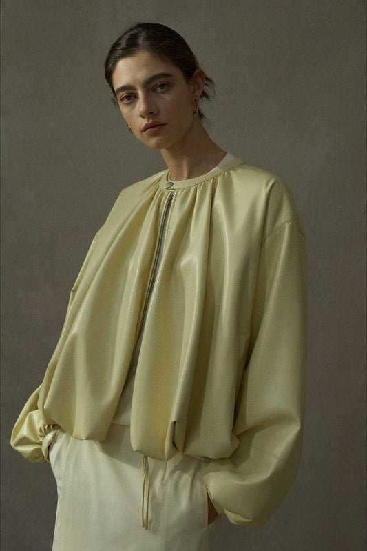 Cotton blend paper-like texture cocoon silhouette trench coat