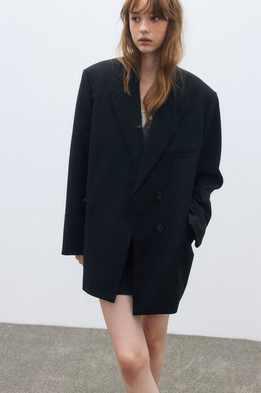 Mid-length peaked-lapel loose suit jacket | 2 color