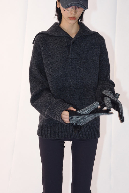 Wool blend lightweight loose-fit striped knitwear | 4 color