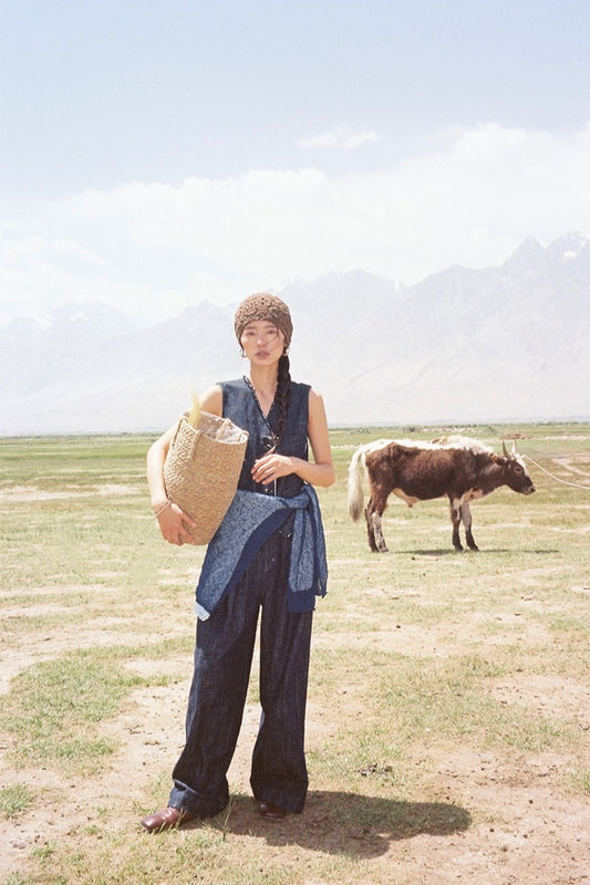 Linen-Cotton Raw-Edge Indigo Vest