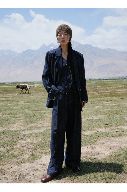 Linen-Cotton Oversized Indigo Blazer