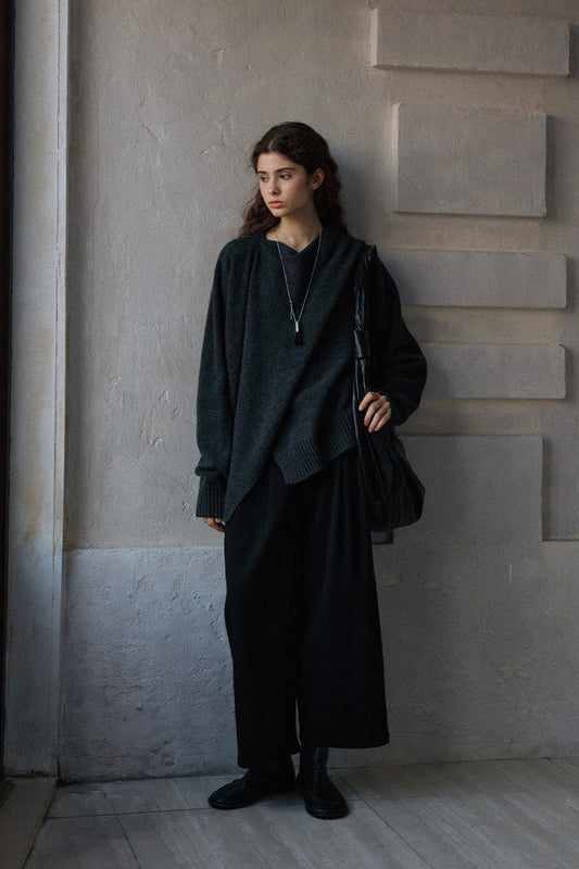 100% wool cozy loose-fit V-neck sweater | 4 color