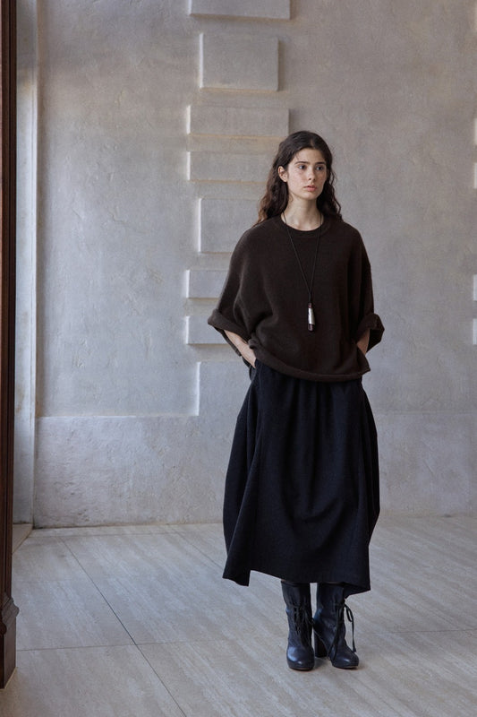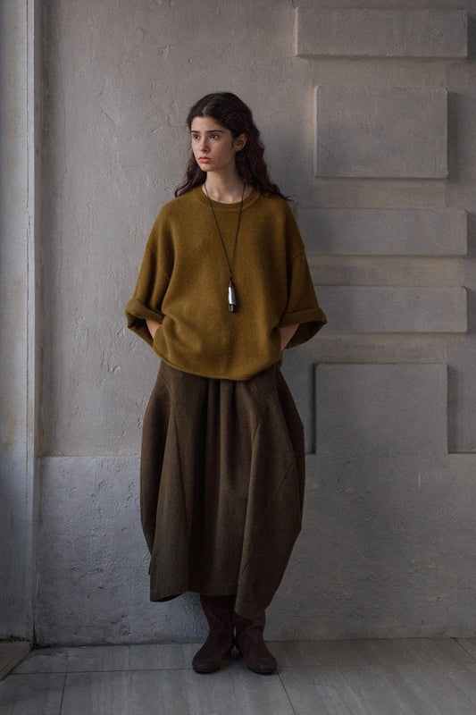 Wool containing loose-fit soft short-sleeve sweater | 3 color