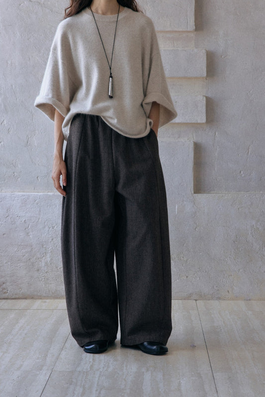 Wool blend herringbone texture loose fit casual pants | 2 color
