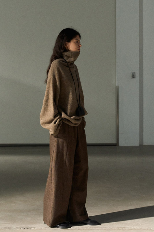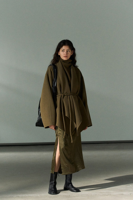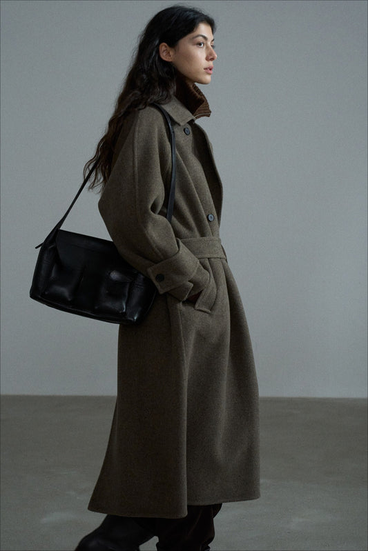 Wool riched big collar relaxed fit jacket with a belt | 3 color