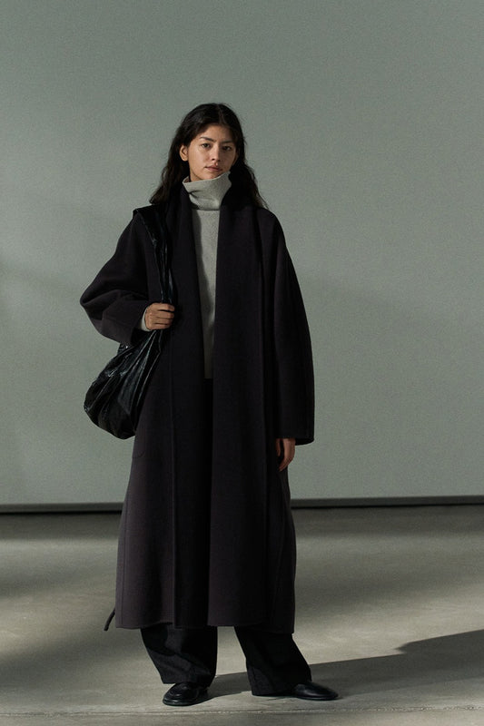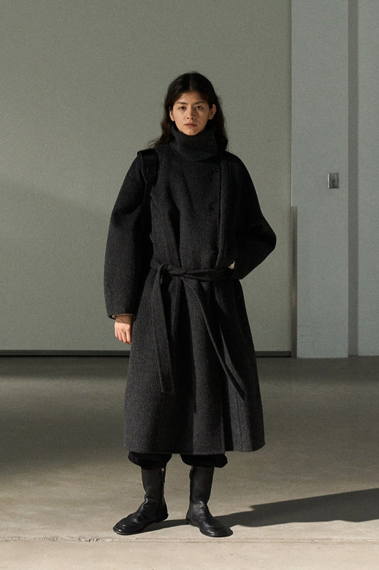 Wool & alpaca double-side fabric stand collar overcoat | 4 color