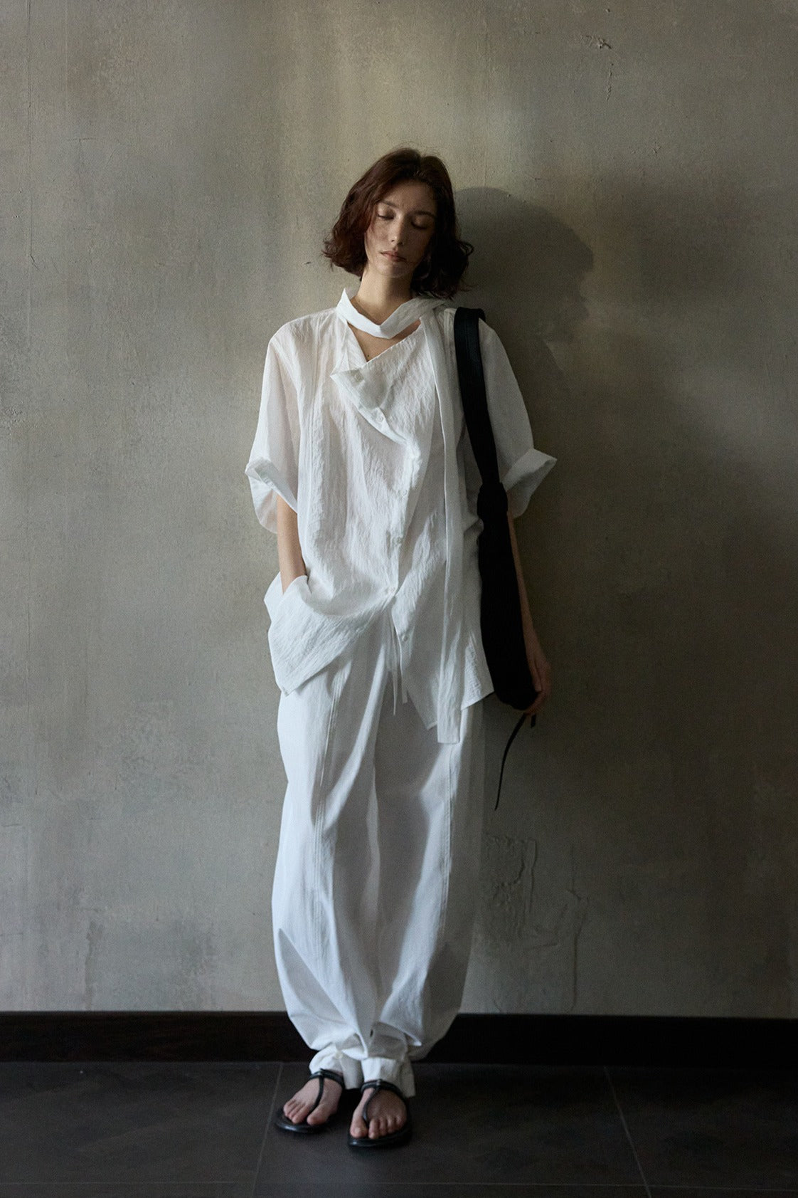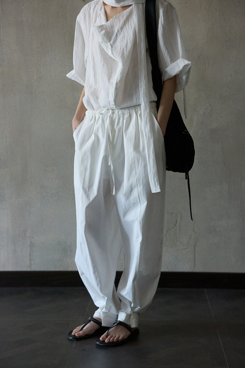"Ohmi Bleach" cotton wrinkled texture loose pants