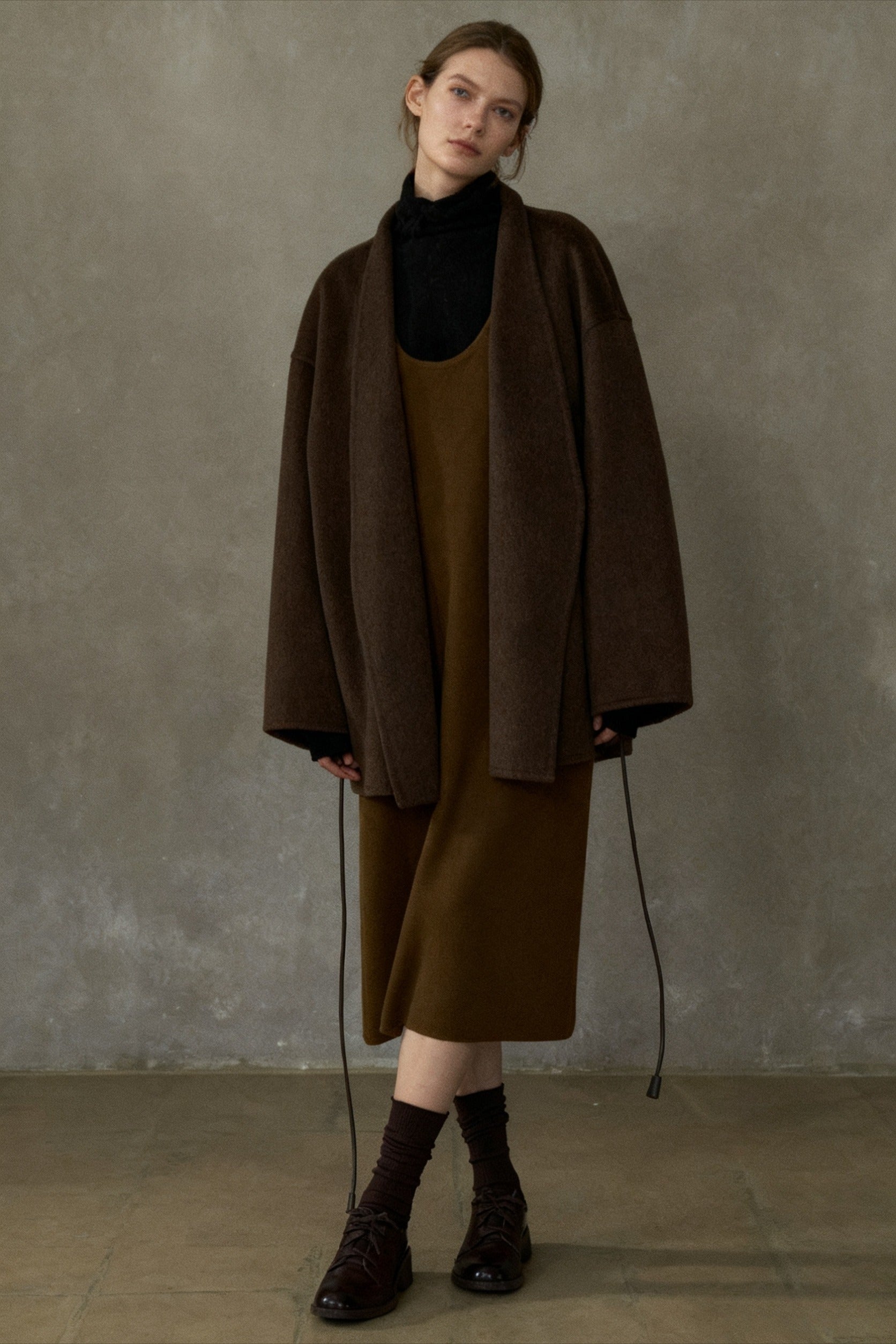 Wool blend double-faced fabric mid-length coat | 4 color