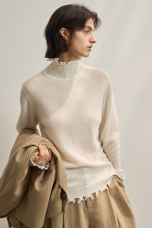 Suéter informal con borde sin rematar, 100 % lana de oveja | 5 colores