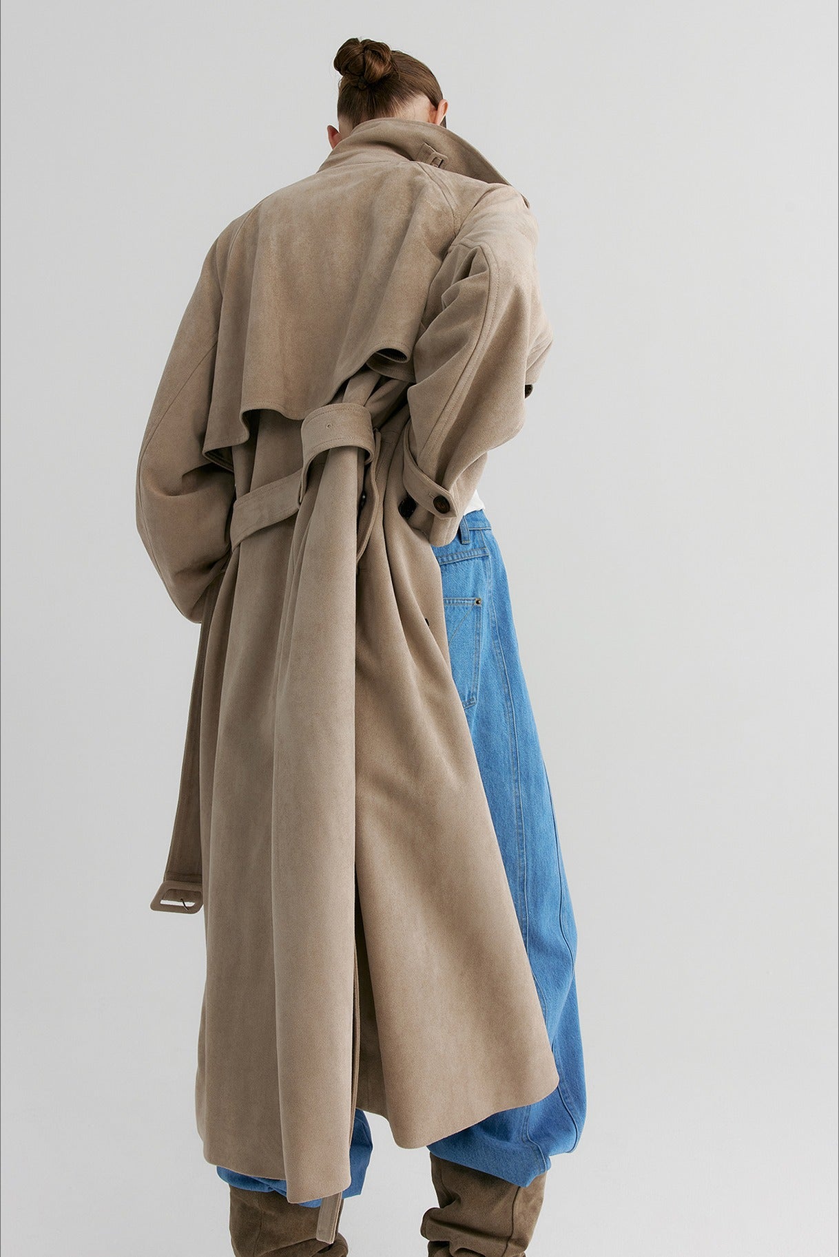 Gabardina con silueta de capullo y textura similar al papel en mezcla de algodón