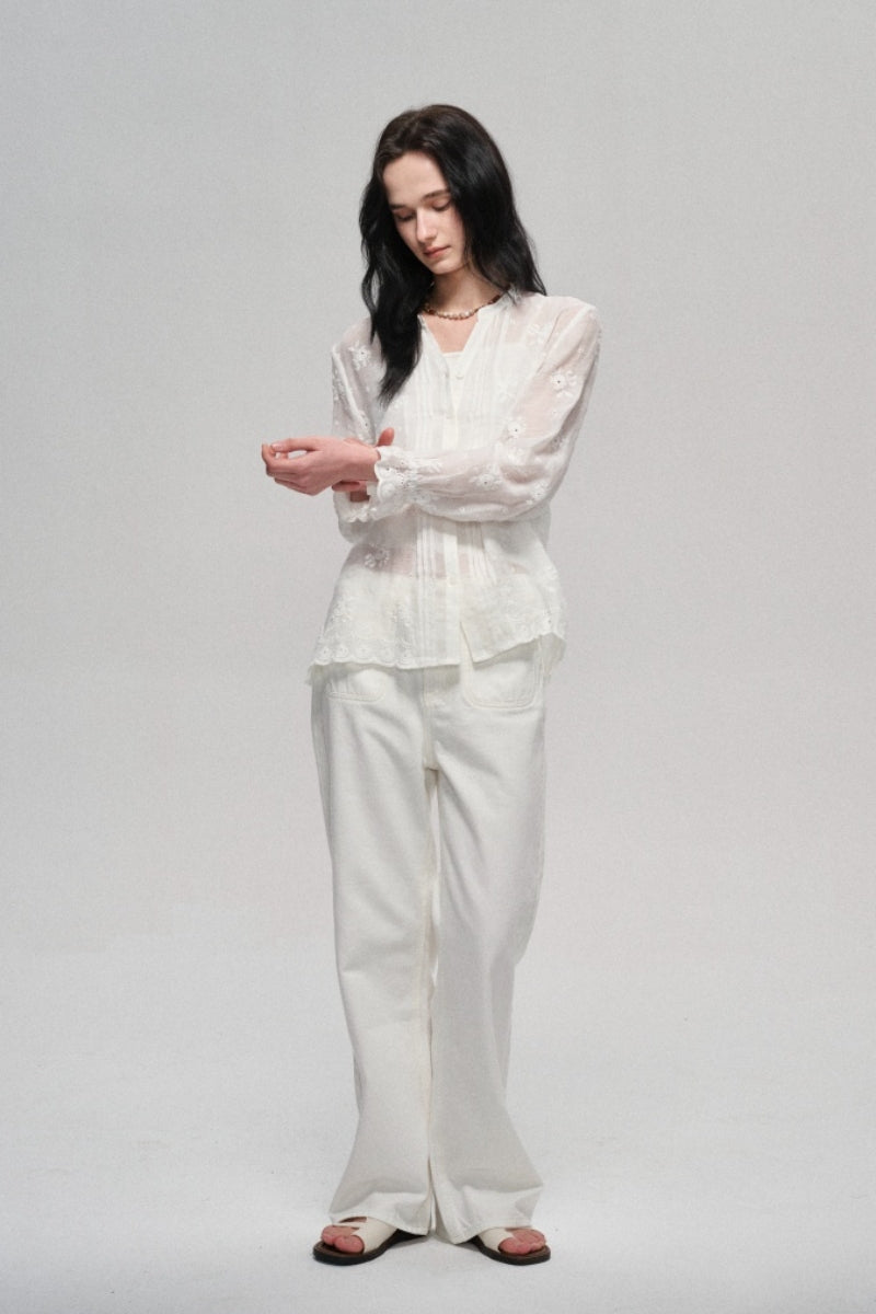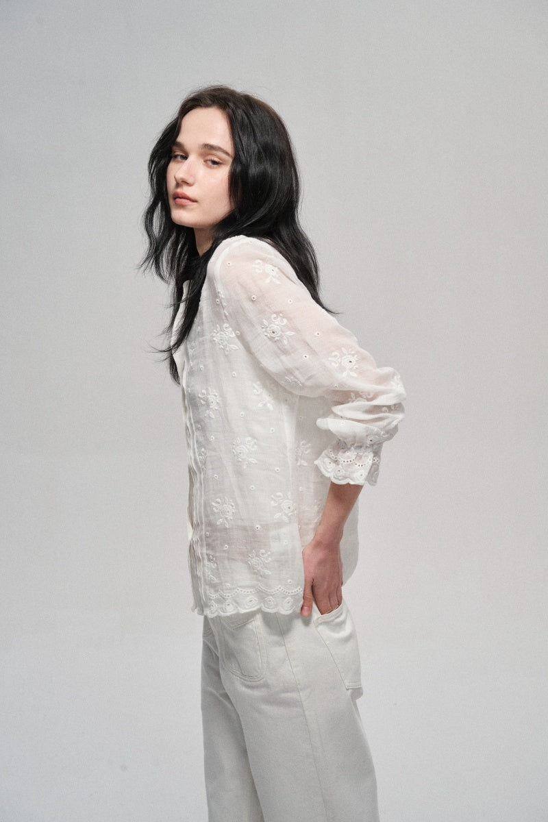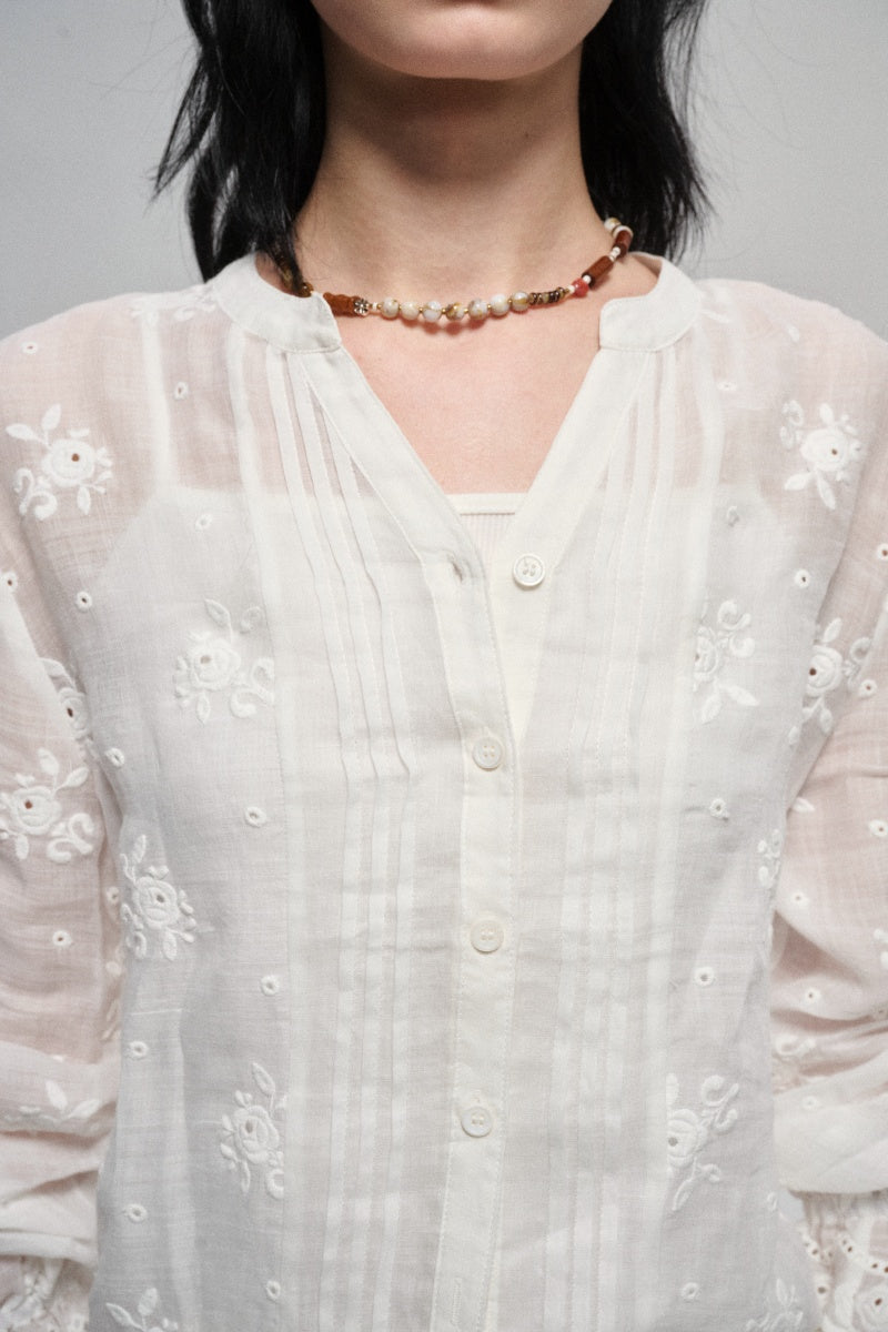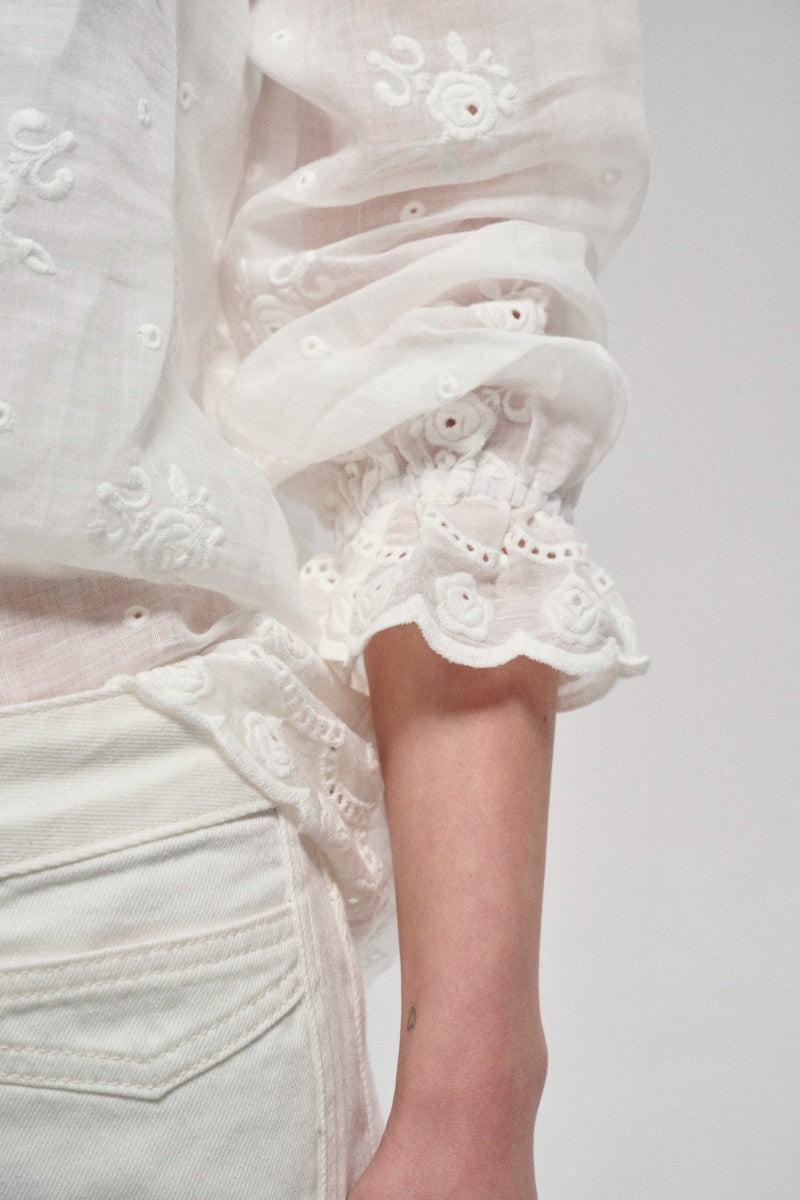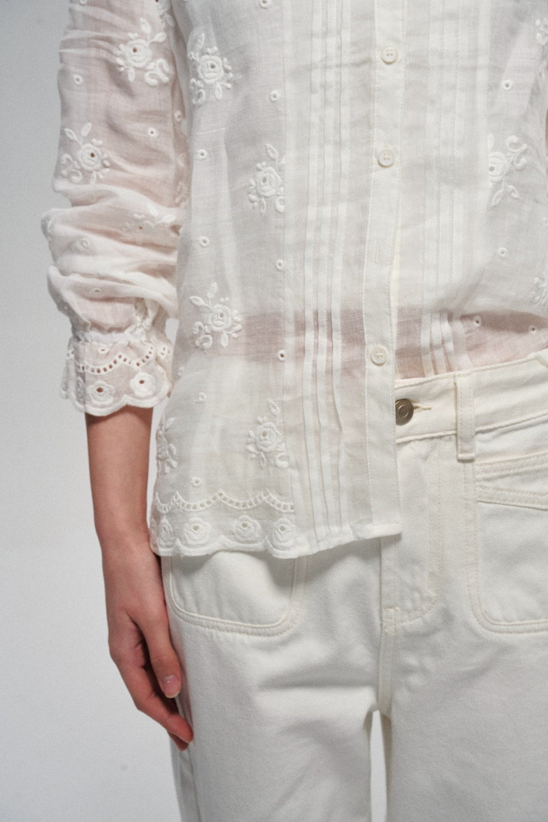 Camisa casual con recortes bordados 100% ramio