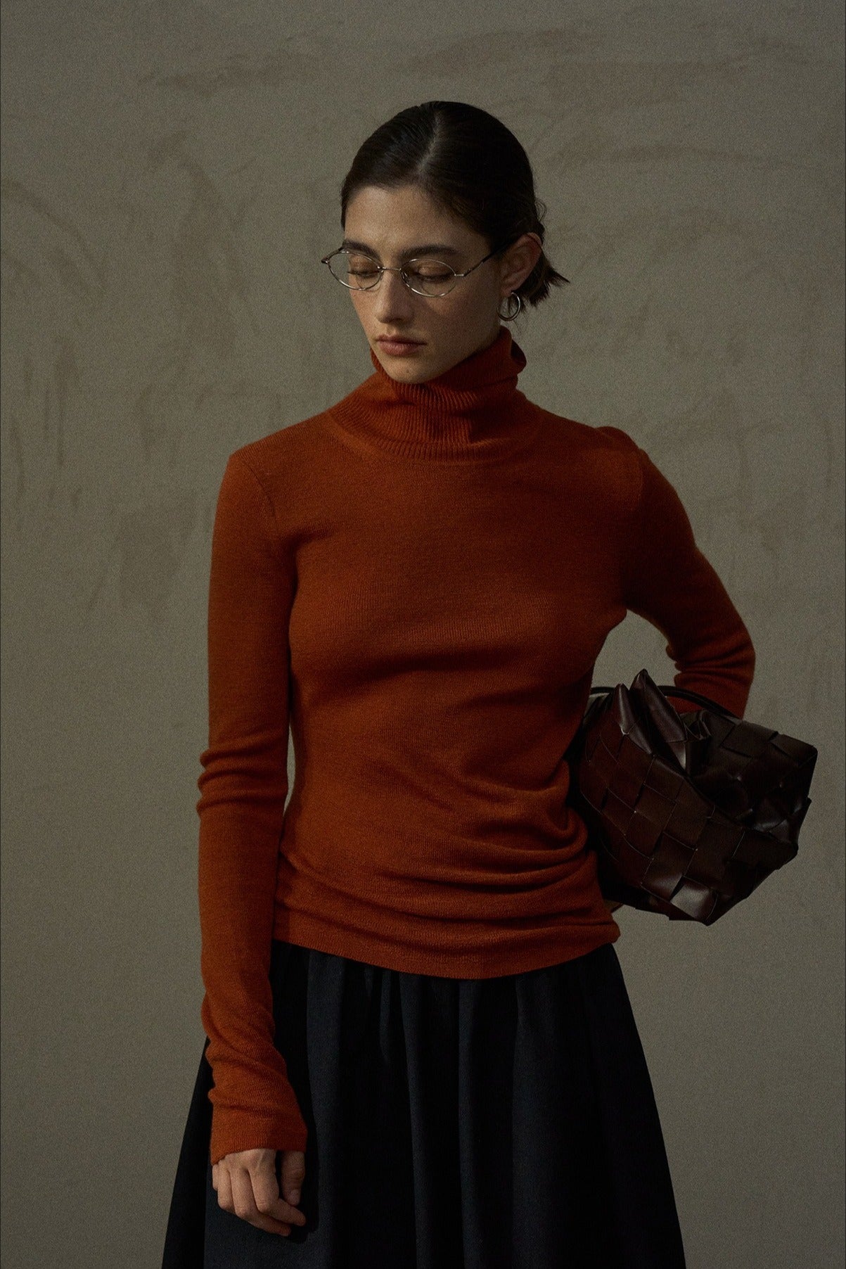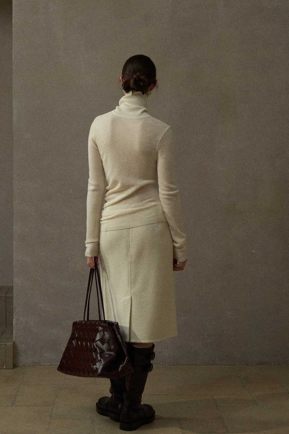 Jersey de cuello alto con bajo irregular, 100% lana | 7 colores