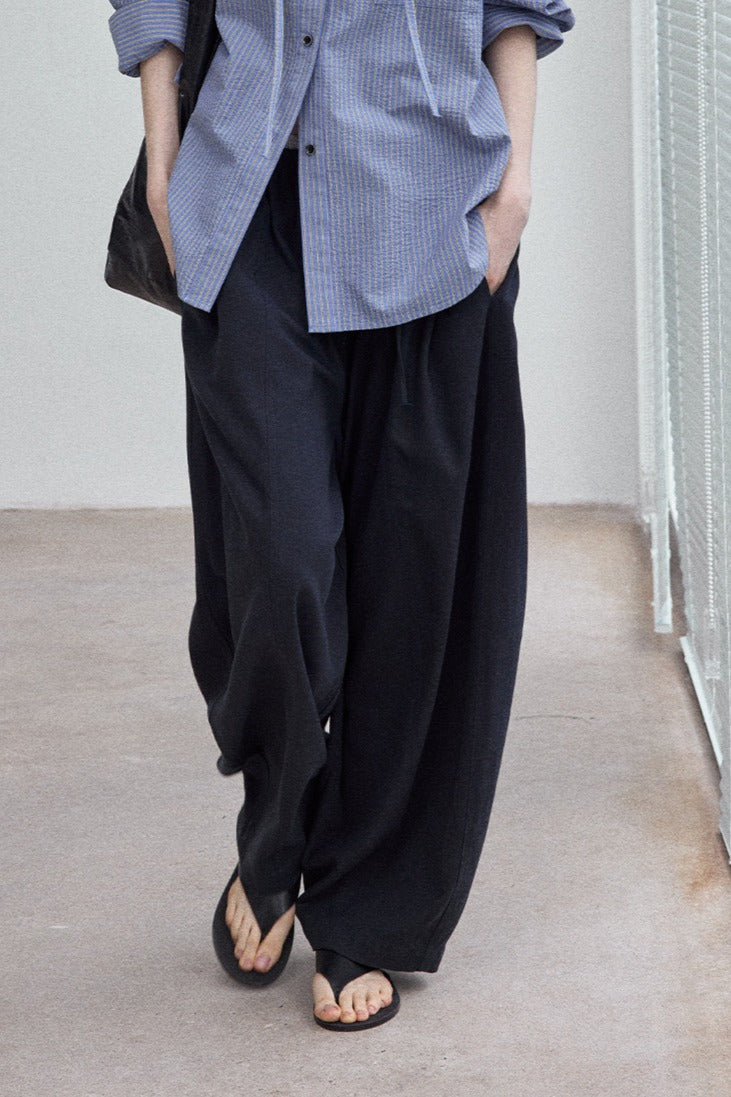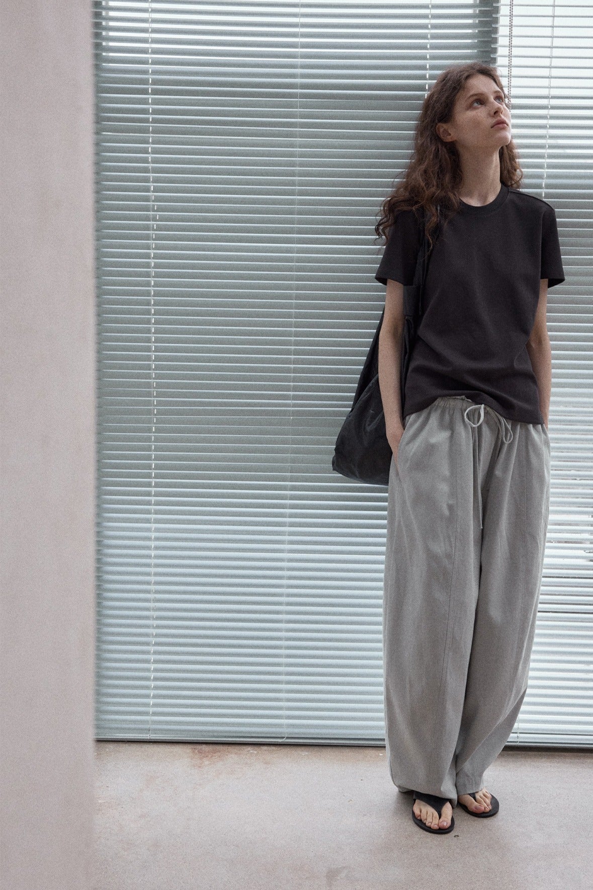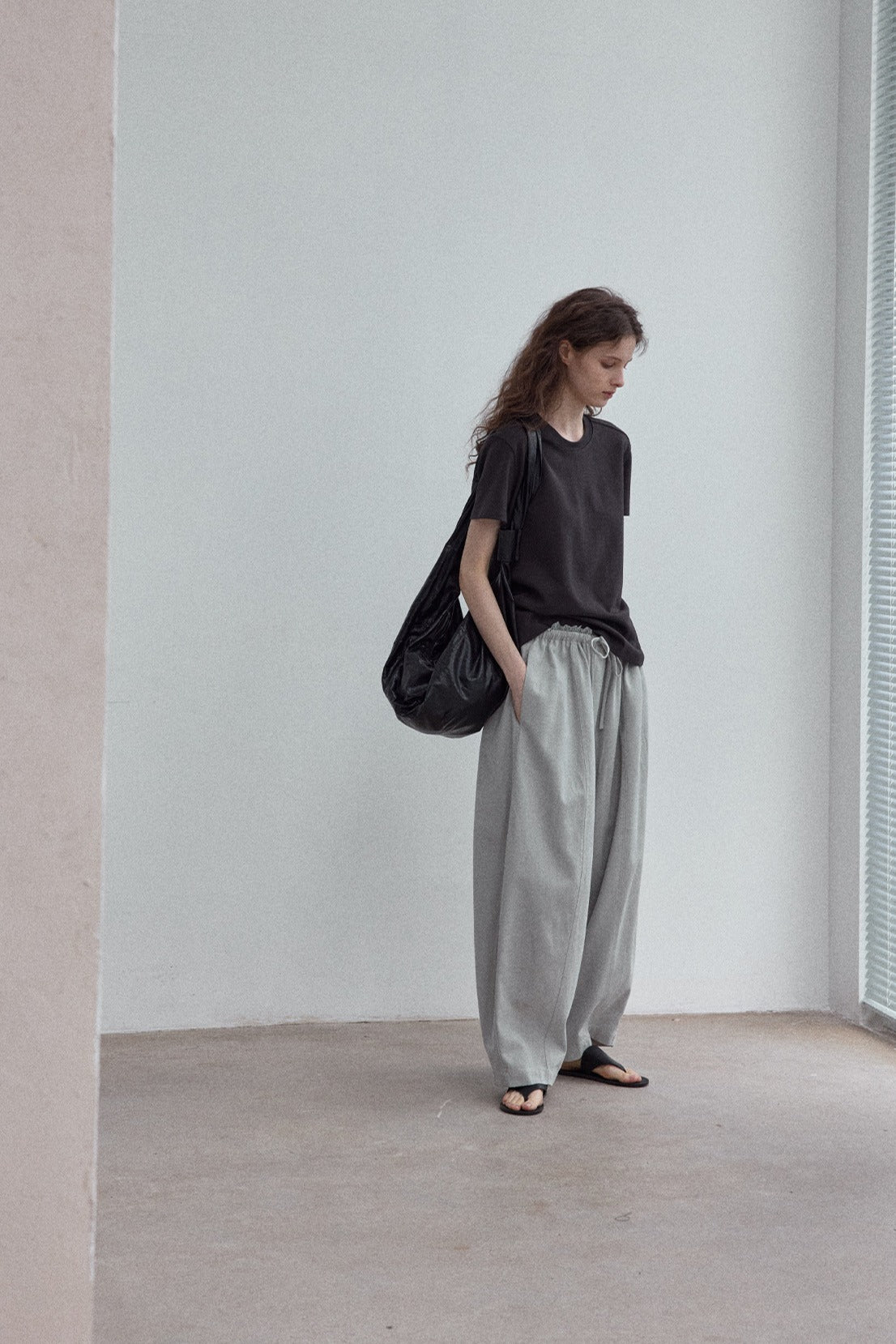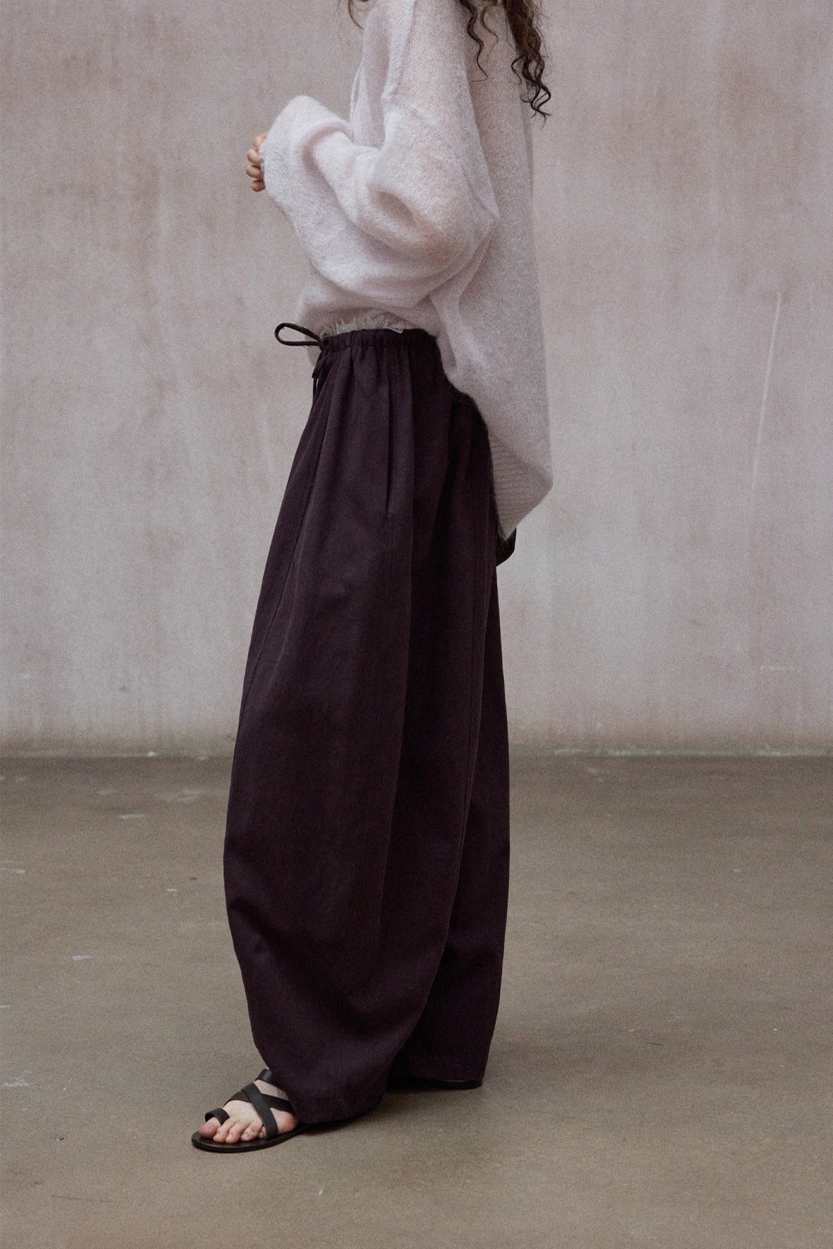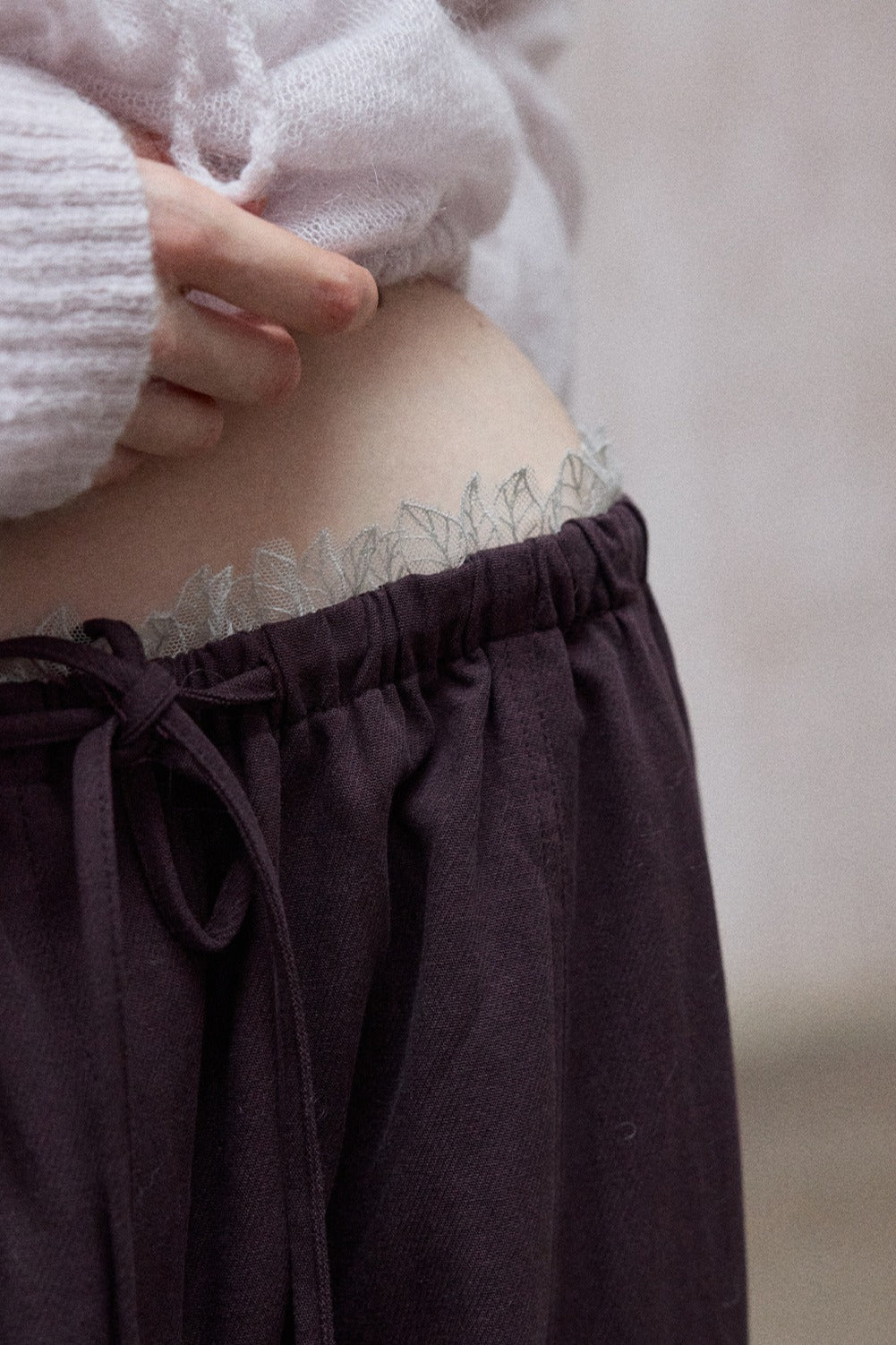 Cotton blend cocoon shape lace waist loose pants dark grey