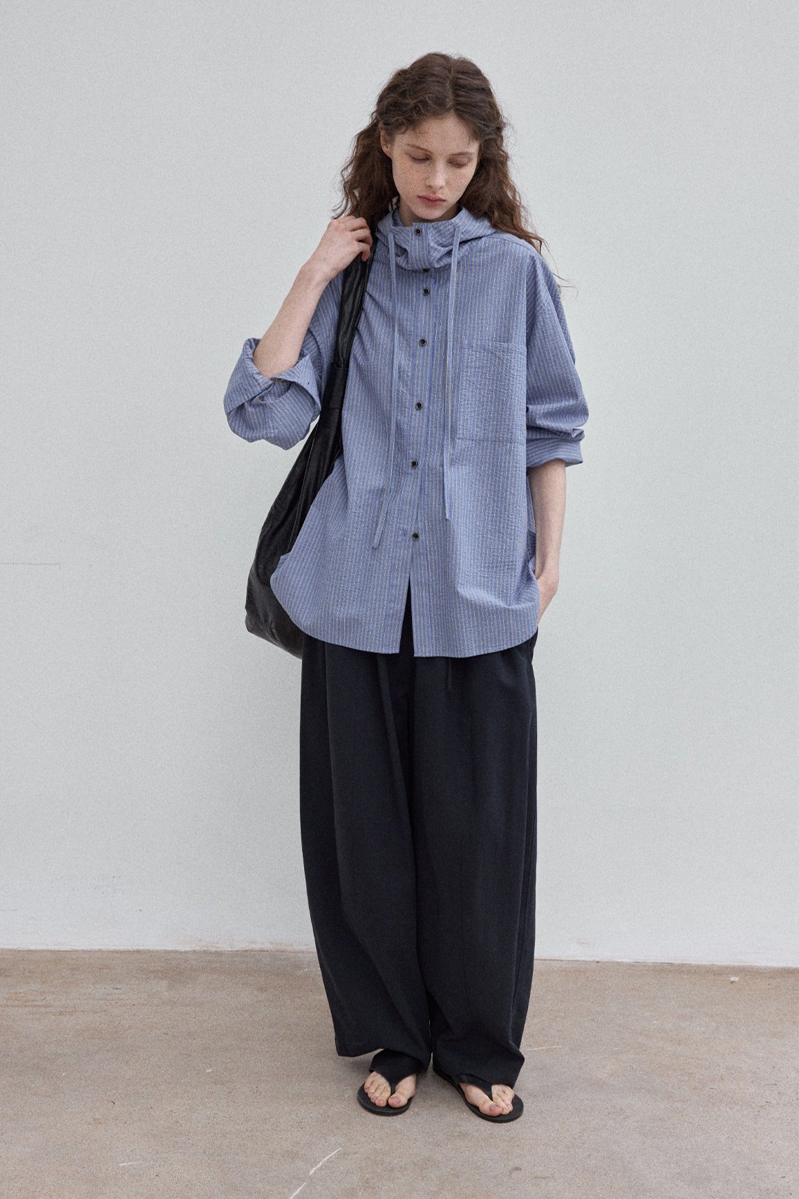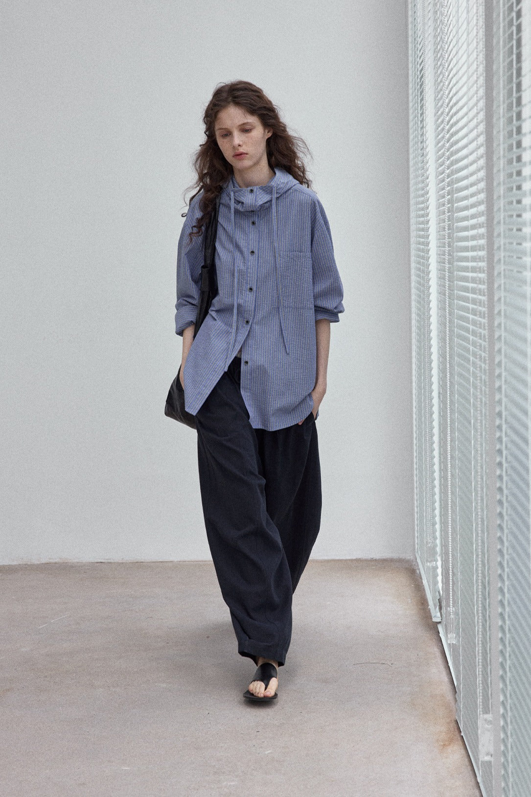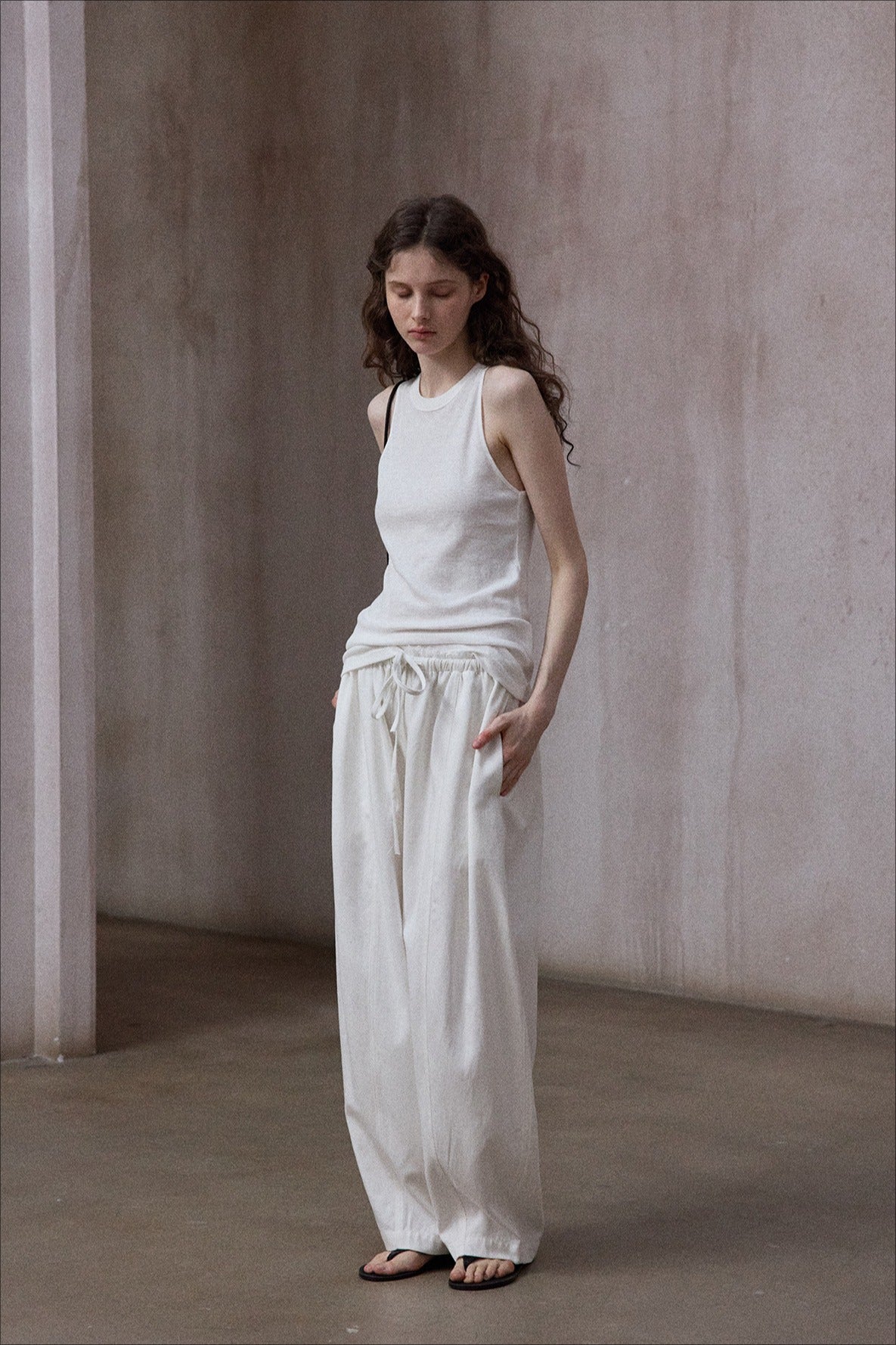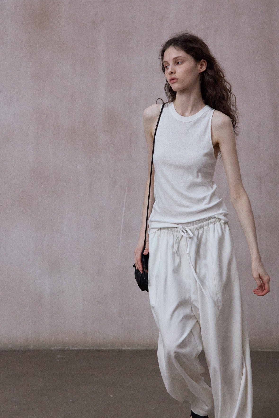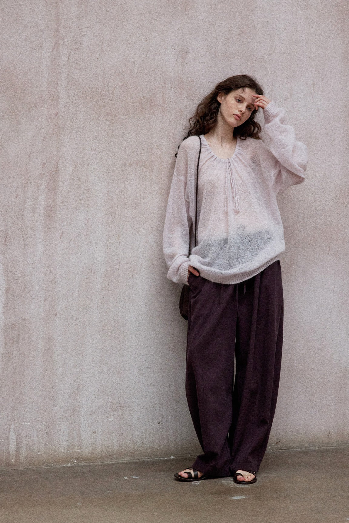 Cotton blend cocoon shape lace waist loose pants dark grey