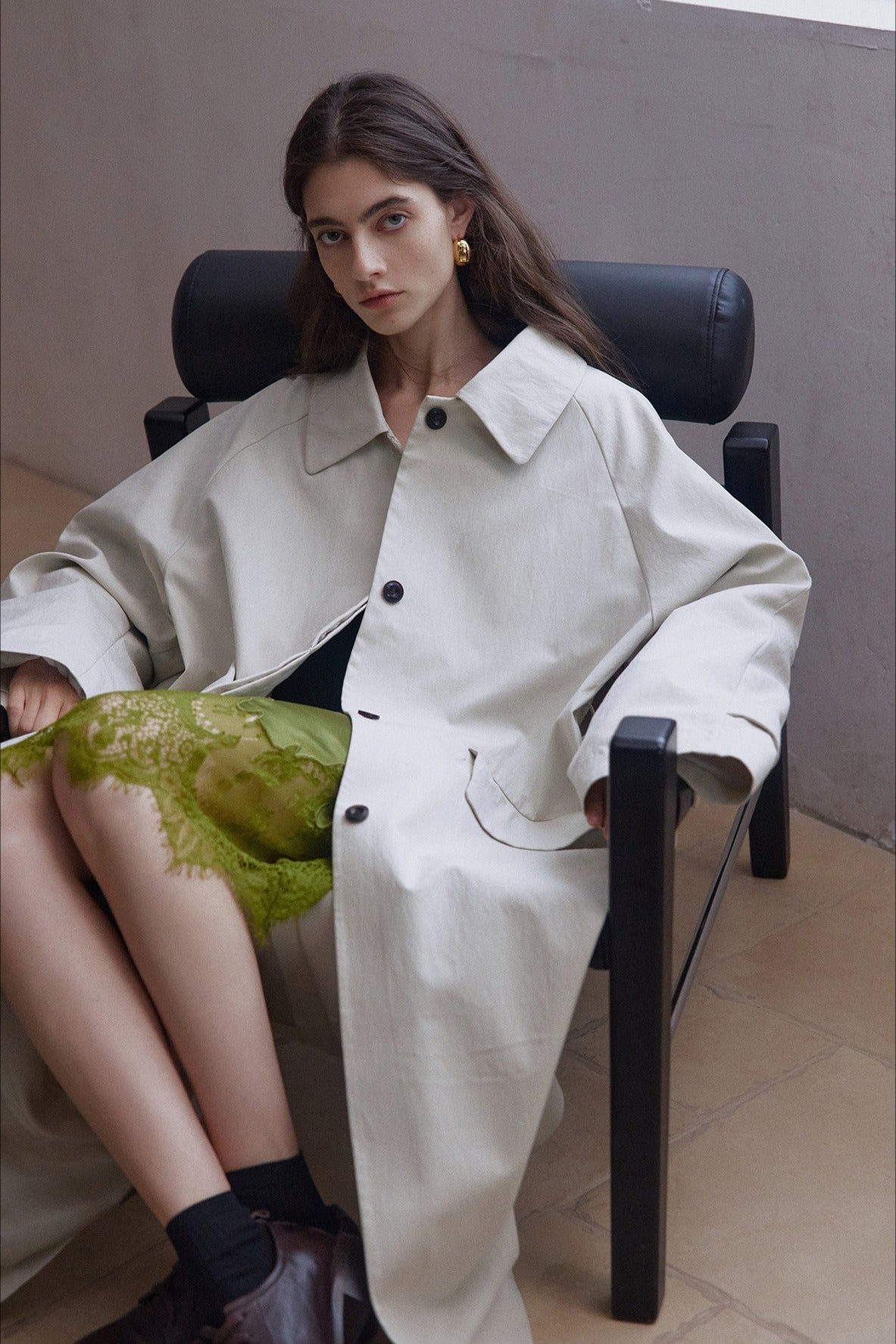 Gabardina de corte holgado en mezcla de algodón con cinturón
