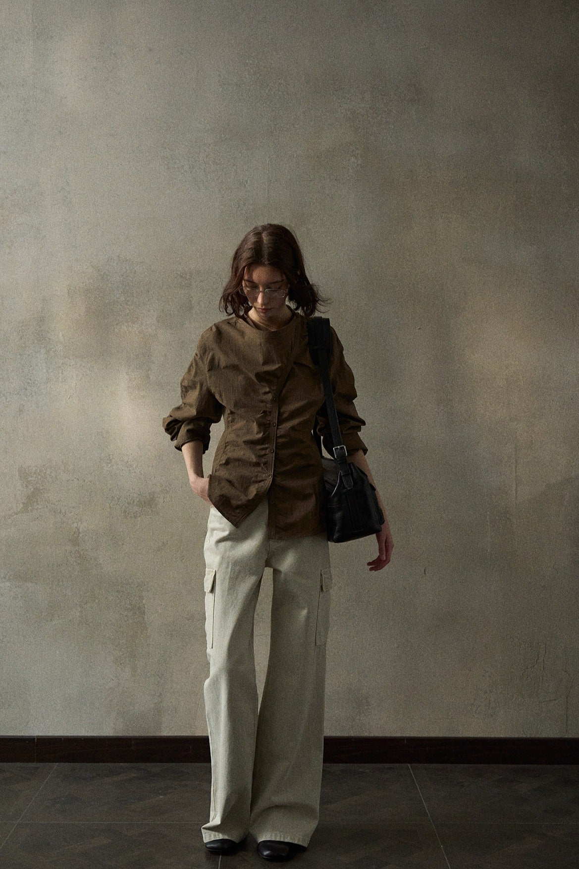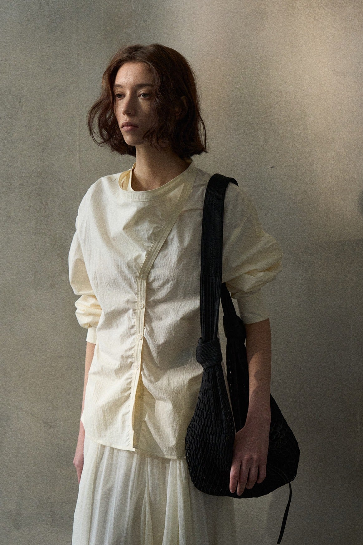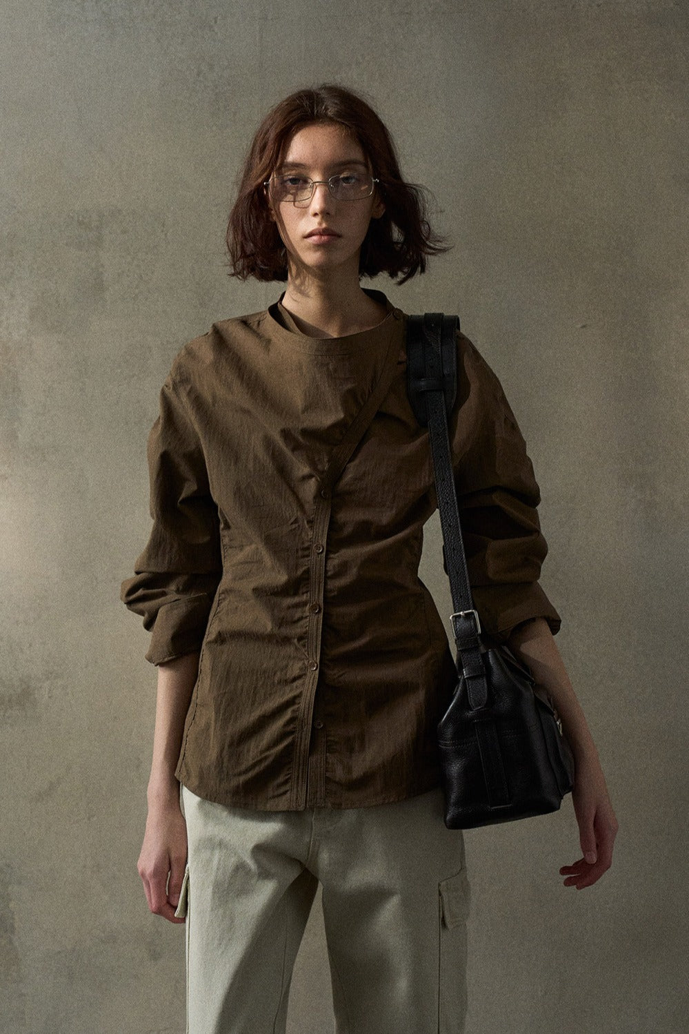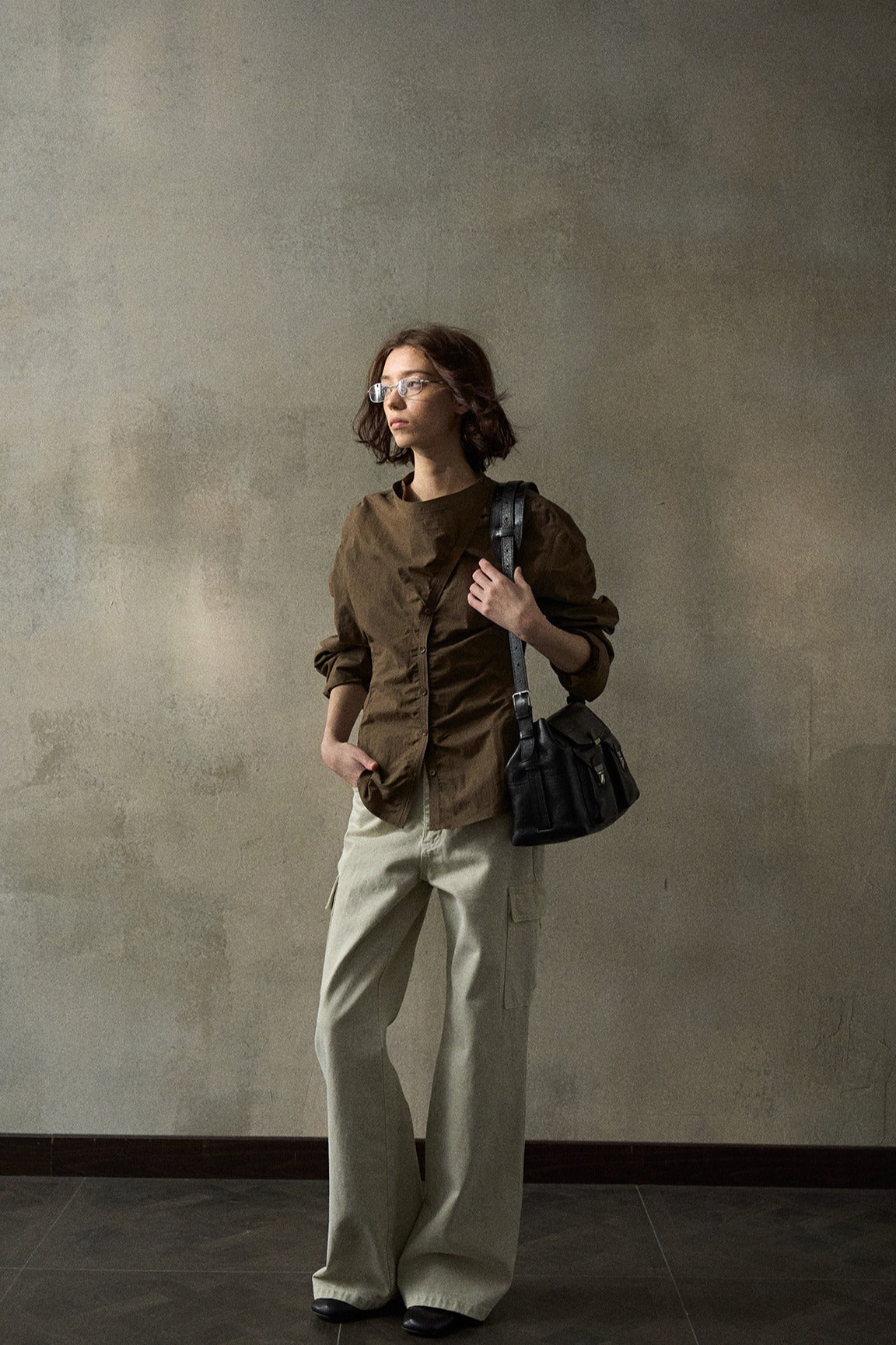 Camisa de mezcla de algodón con cuello de bufanda | 3 colores