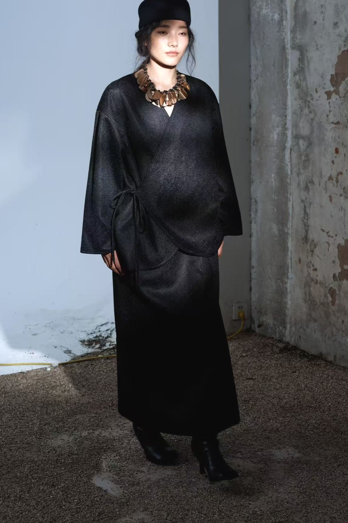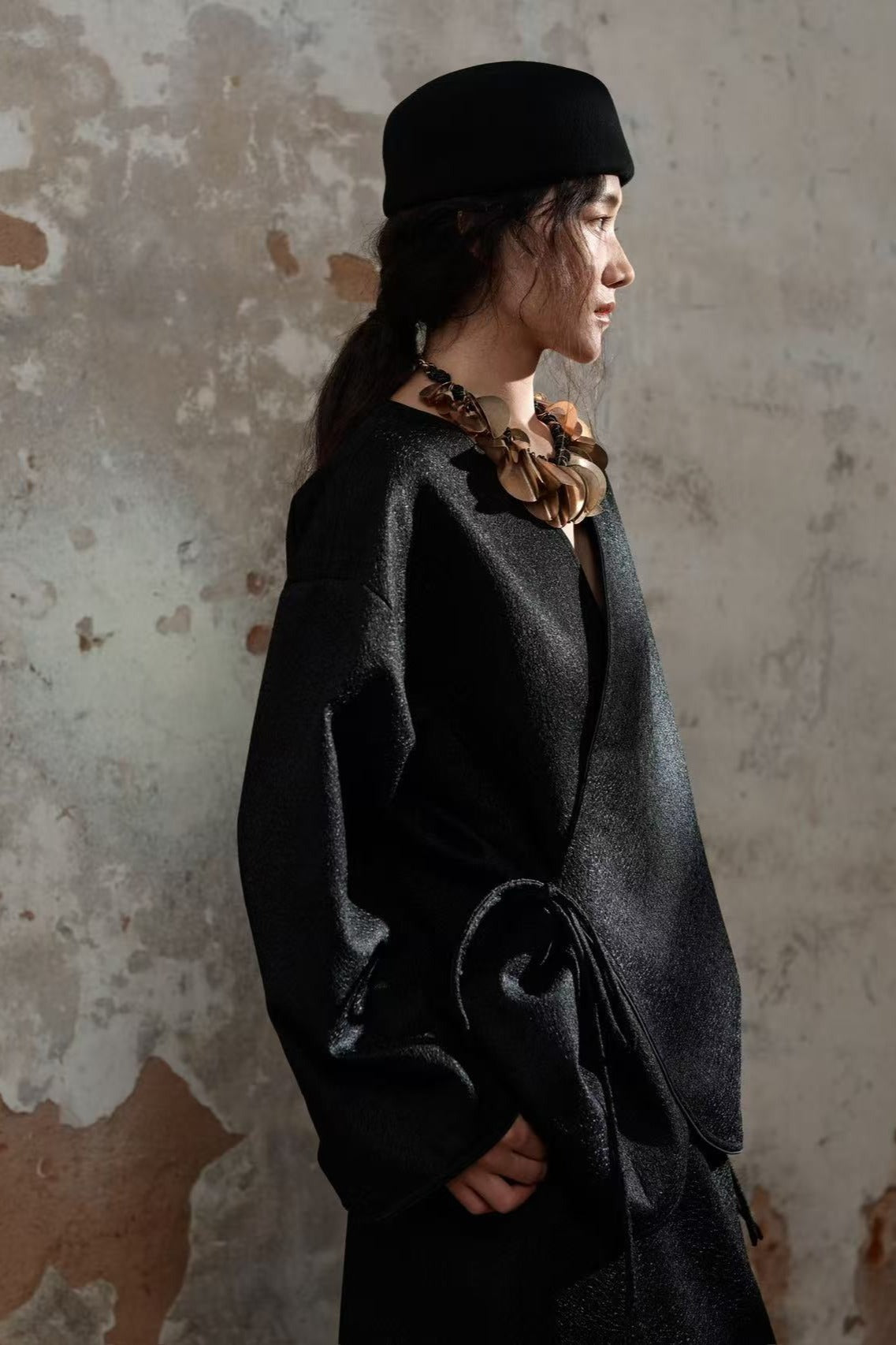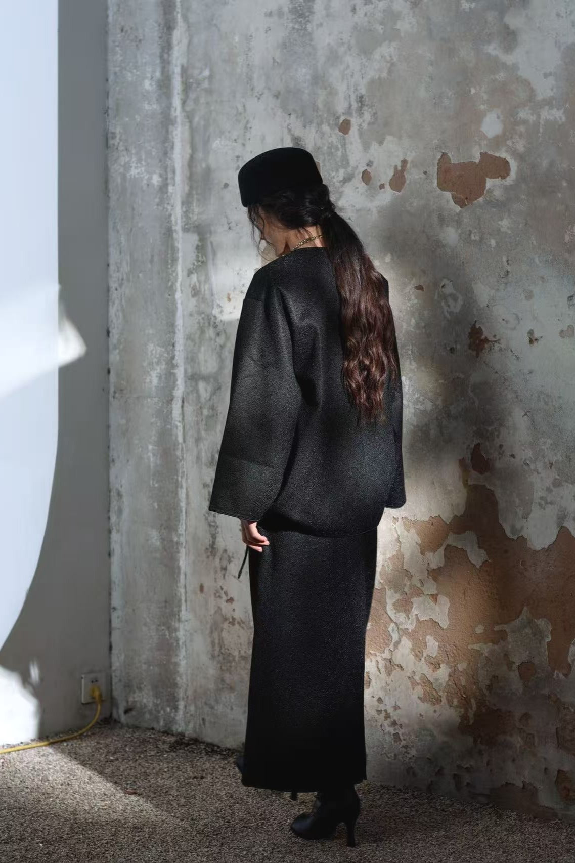 Chaqueta tipo chaqueta con abertura inclinada y textura craquelada | 2 colores