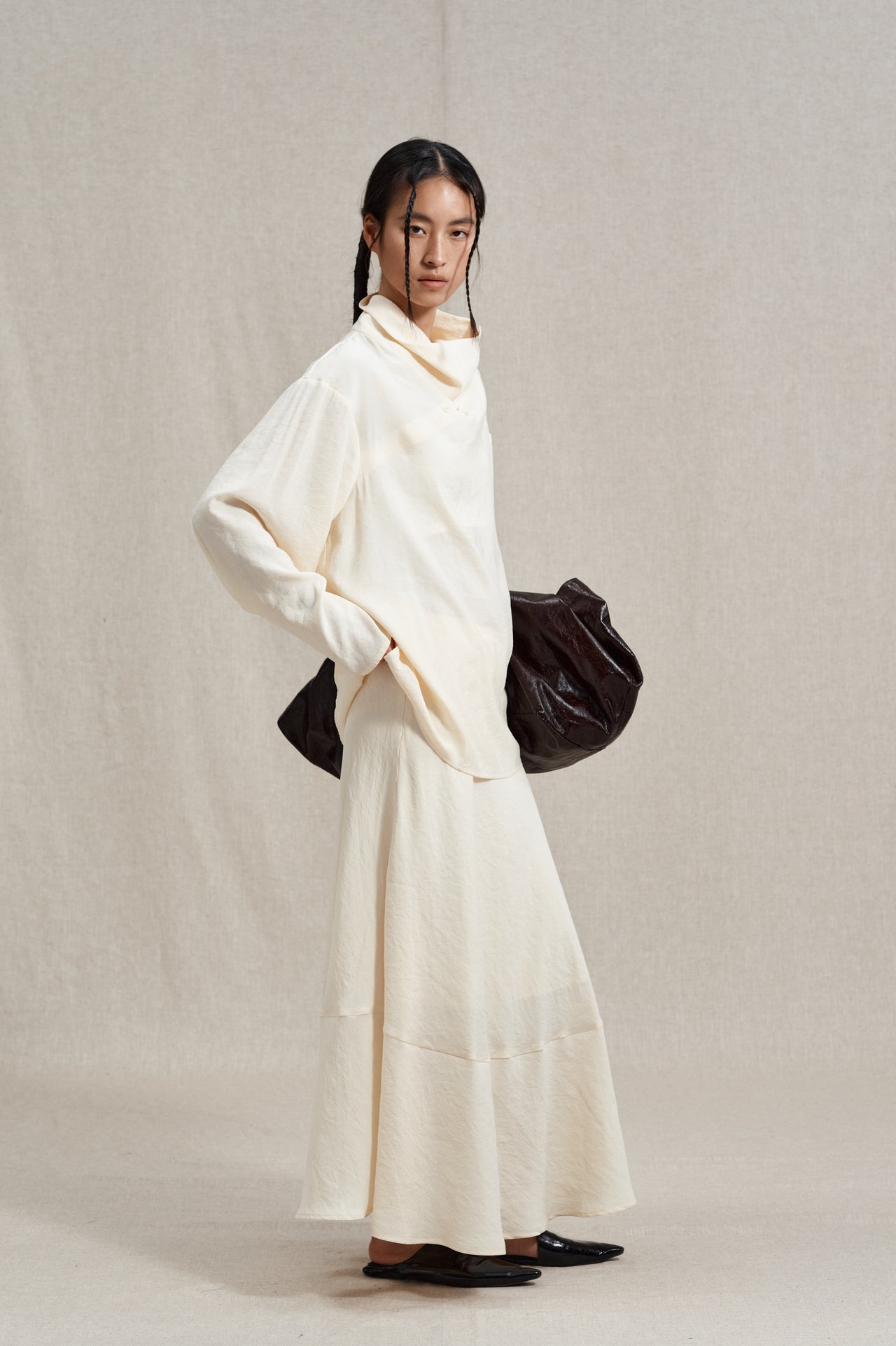 Falda de cola de pez con patchwork en mezcla de rayón