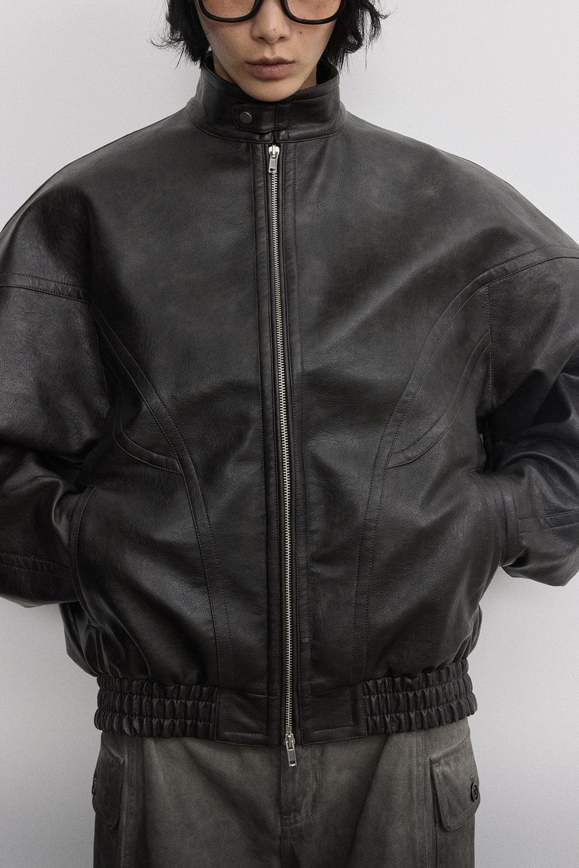 Esta chaqueta de inspiración retro es una mezcla de PU y poliéster que ofrece un aspecto elegante y vanguardista. El cuello alto y los parches le añaden un toque vintage, mientras que el dobladillo elástico proporciona un ajuste cómodo y seguro. Esta chaqueta no es solo una declaración de estilo, sino también una opción práctica para un guardarropa dinámico.