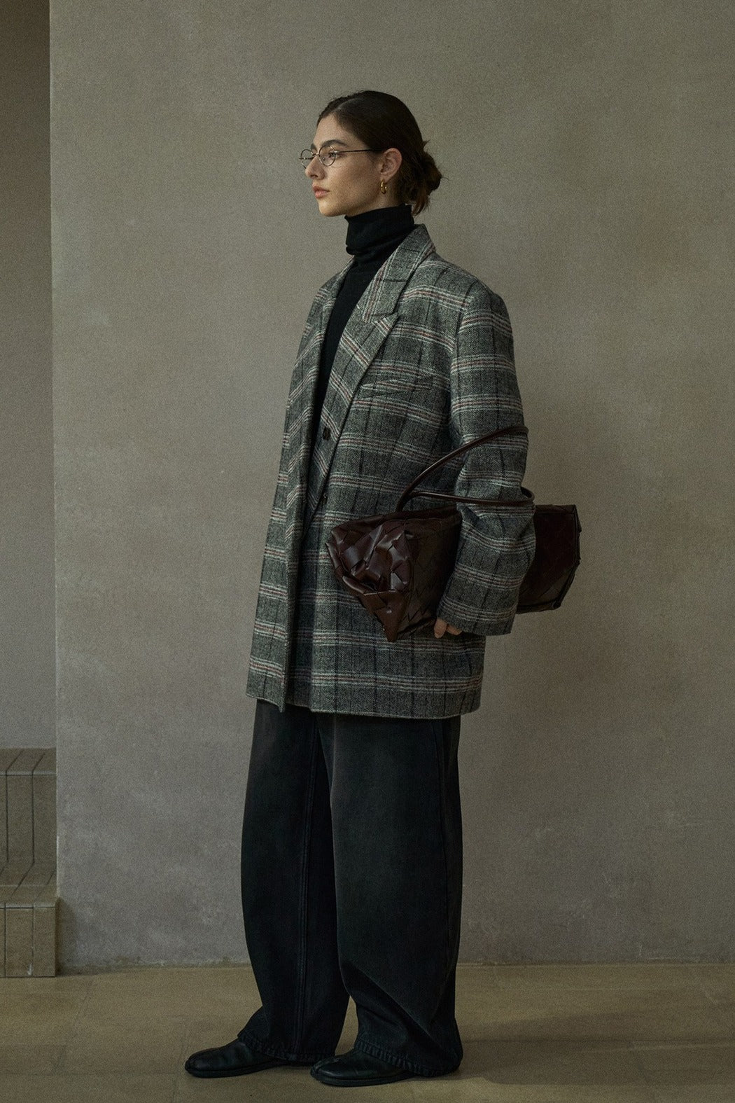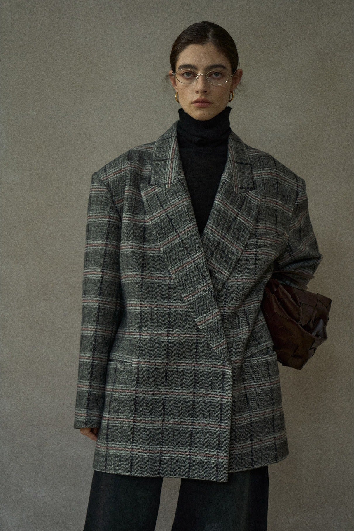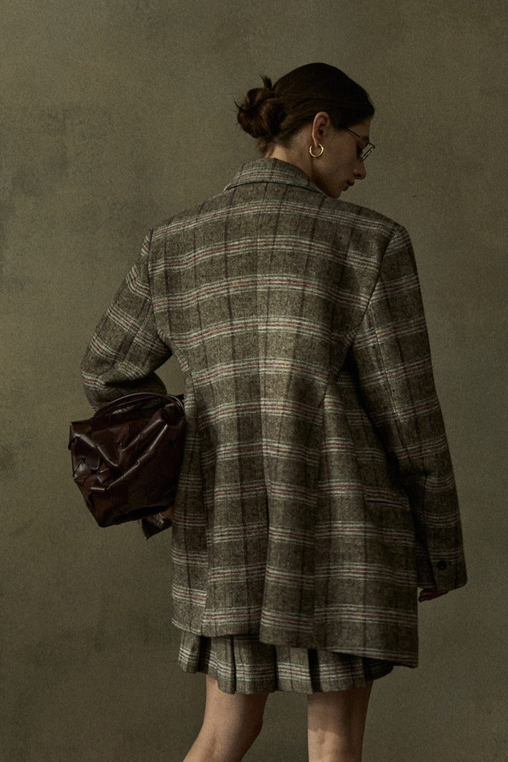Blazer negro extra holgado de lana con estampado de cuadros