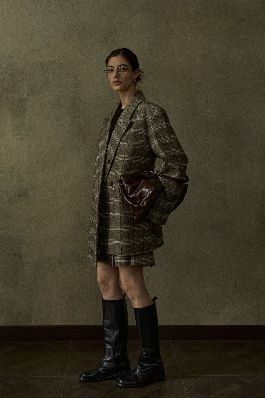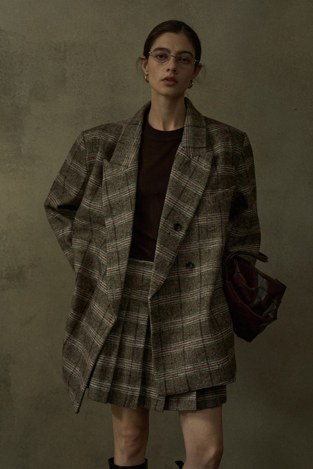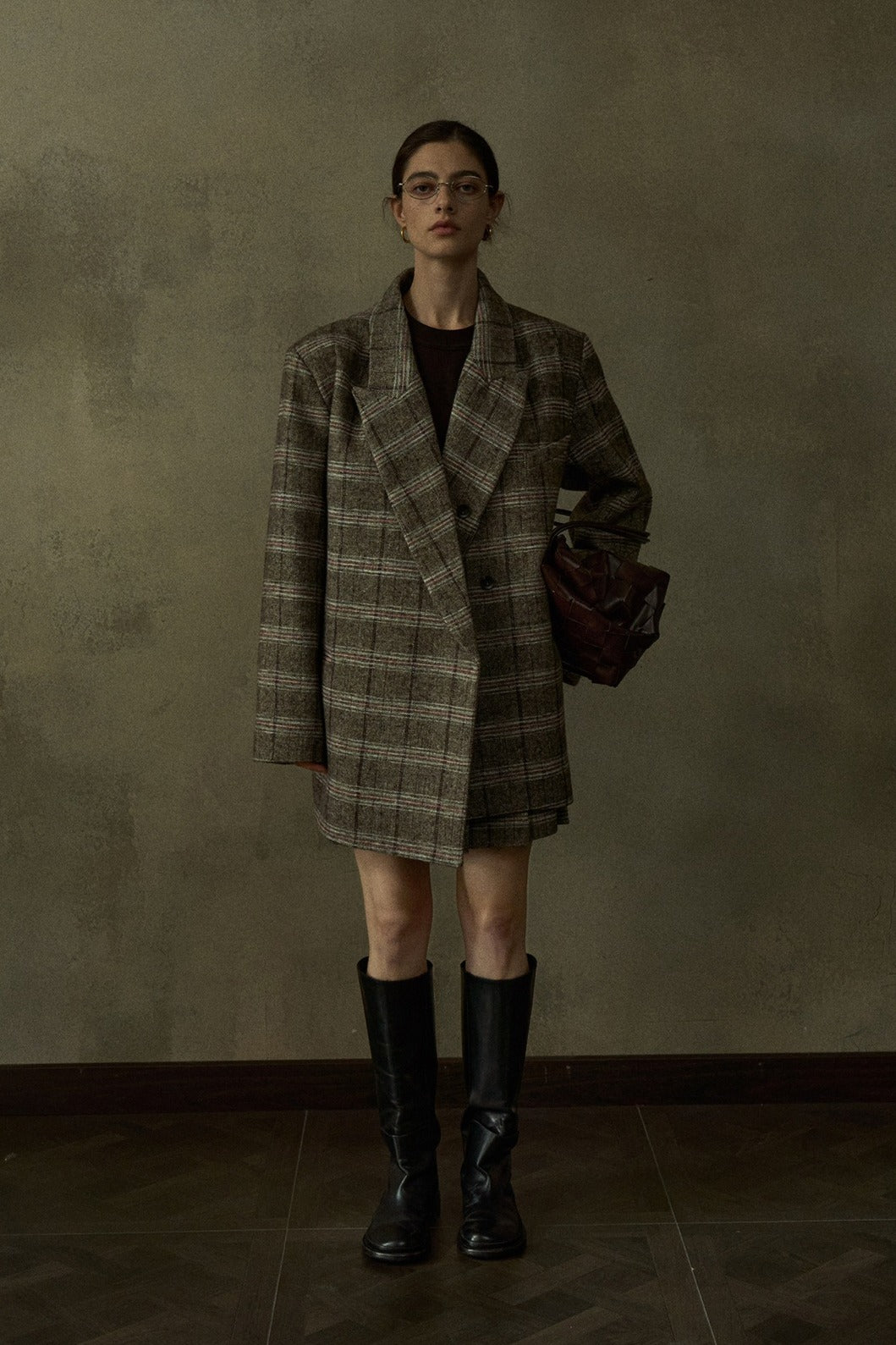 Blazer negro extra holgado de lana con estampado de cuadros