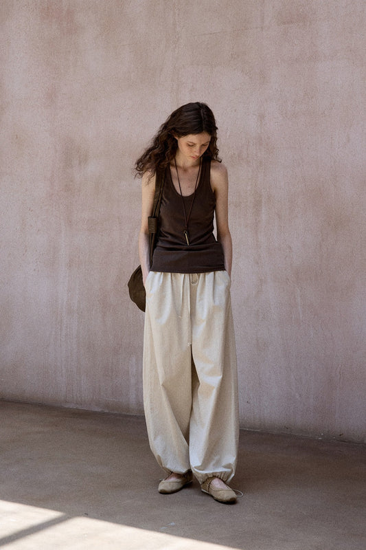 Pantalones holgados de largo medio con cintura de doble capa 100 % algodón | 2 colores