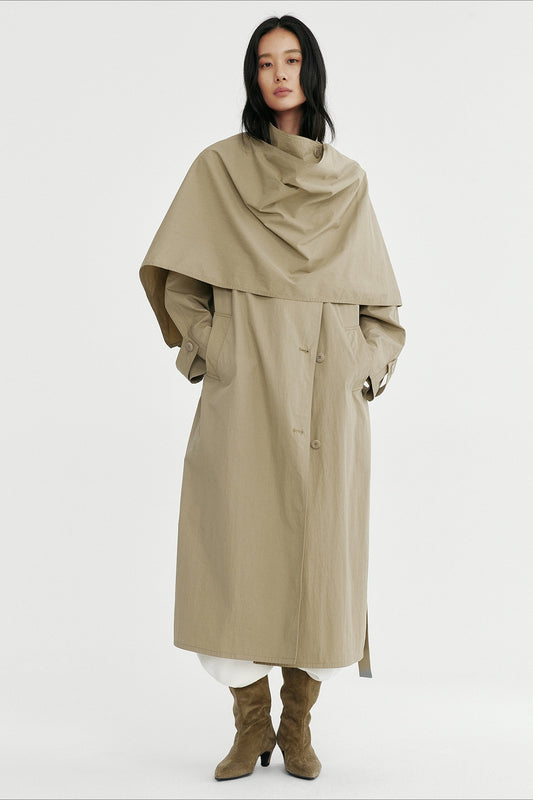 Gabardina con silueta de capullo y textura similar al papel en mezcla de algodón
