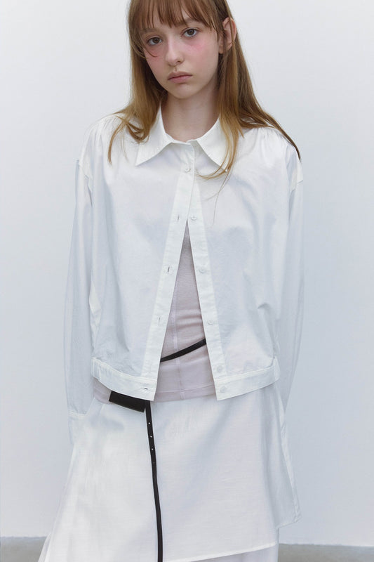 Cotton blend cropped elastic waist shirt jacket | 3 color