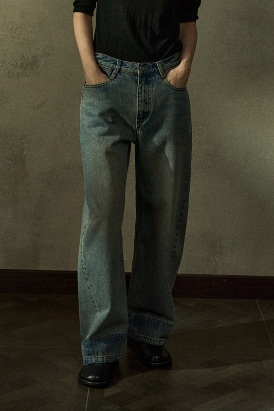 Cotton blend contrasting cuff scythe-shaped leg jeans | 2 color