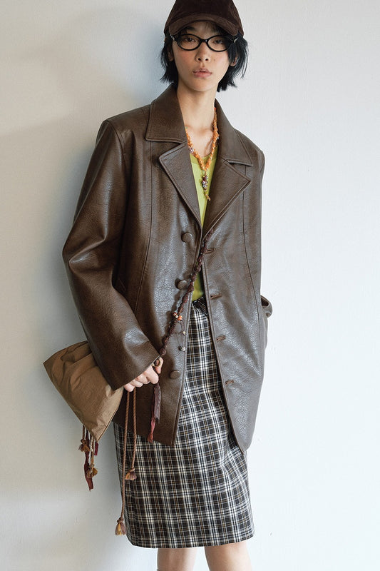 Chaqueta de PU de largo medio con cintura texturizada | 4 colores