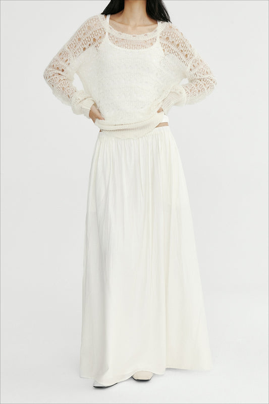 Viscose blend soft pleats big hem A-line skirt | 2 color