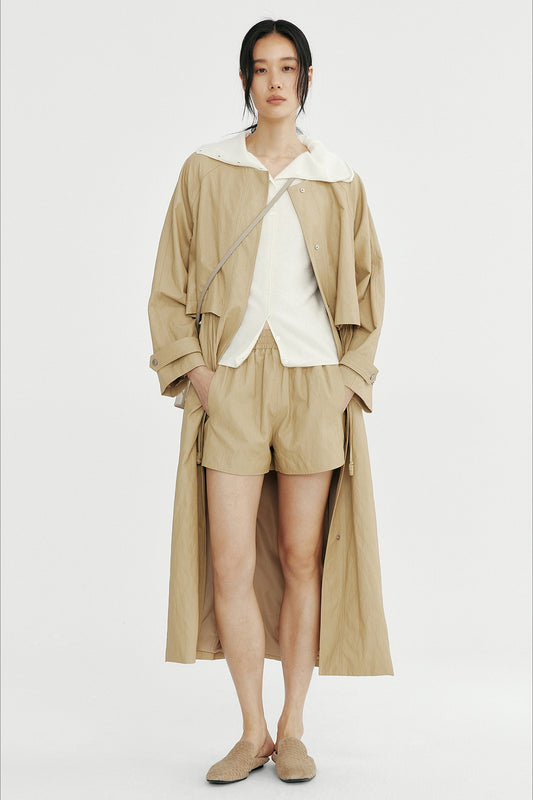 Gabardina con silueta de capullo y textura similar al papel en mezcla de algodón
