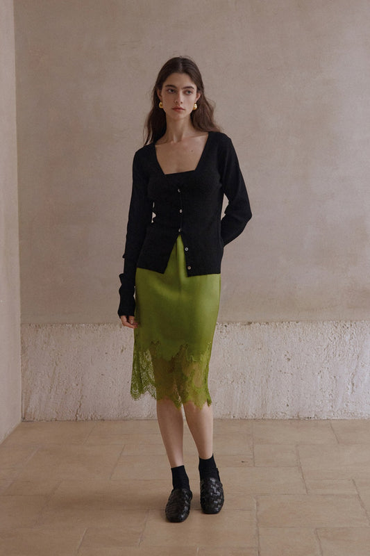 Wool containing fine ribbing V-neck cardigan | 3 color