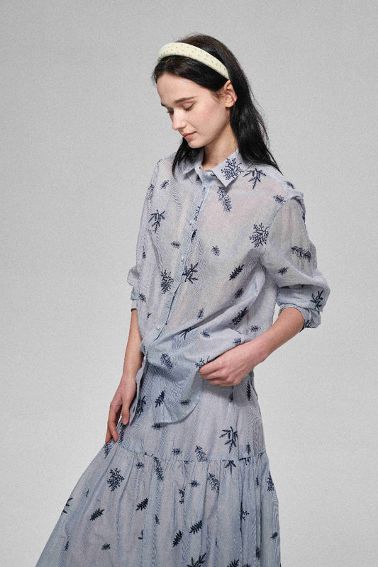 Camisa de rayas bordadas de inspiración natural 100 % algodón