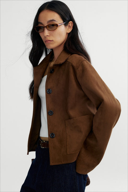 Vintage style fuzzy texture cropped short jacket