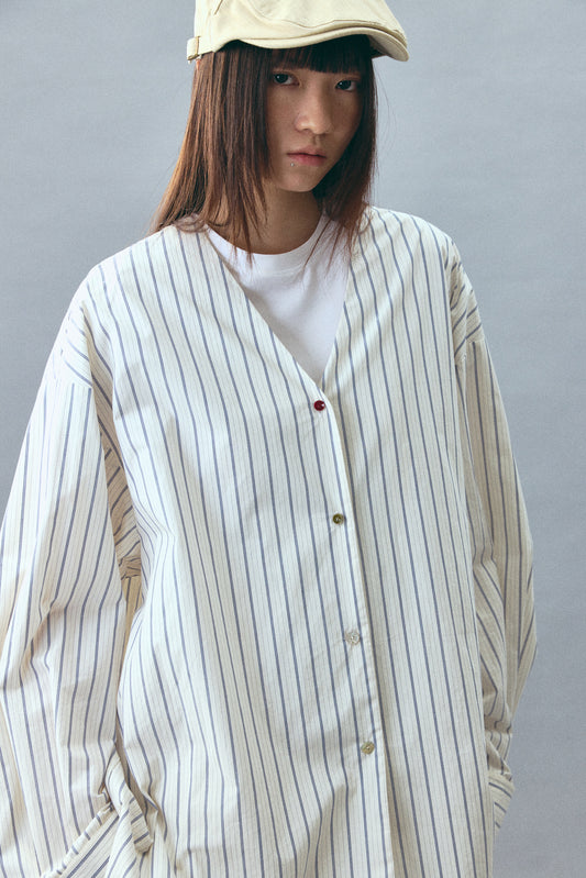 Camisa de algodón de rayas relajadas y corte súper holgado