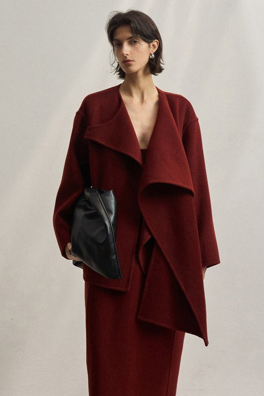 Abrigo minimalista con cuello de traje 100 % lana | 3 colores