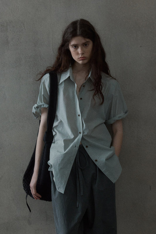 Cotton blend rumpled feel rolled sleeves shirt | 3 color