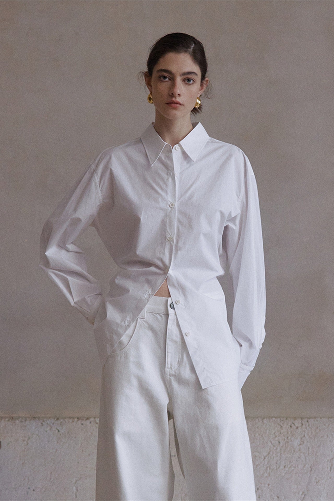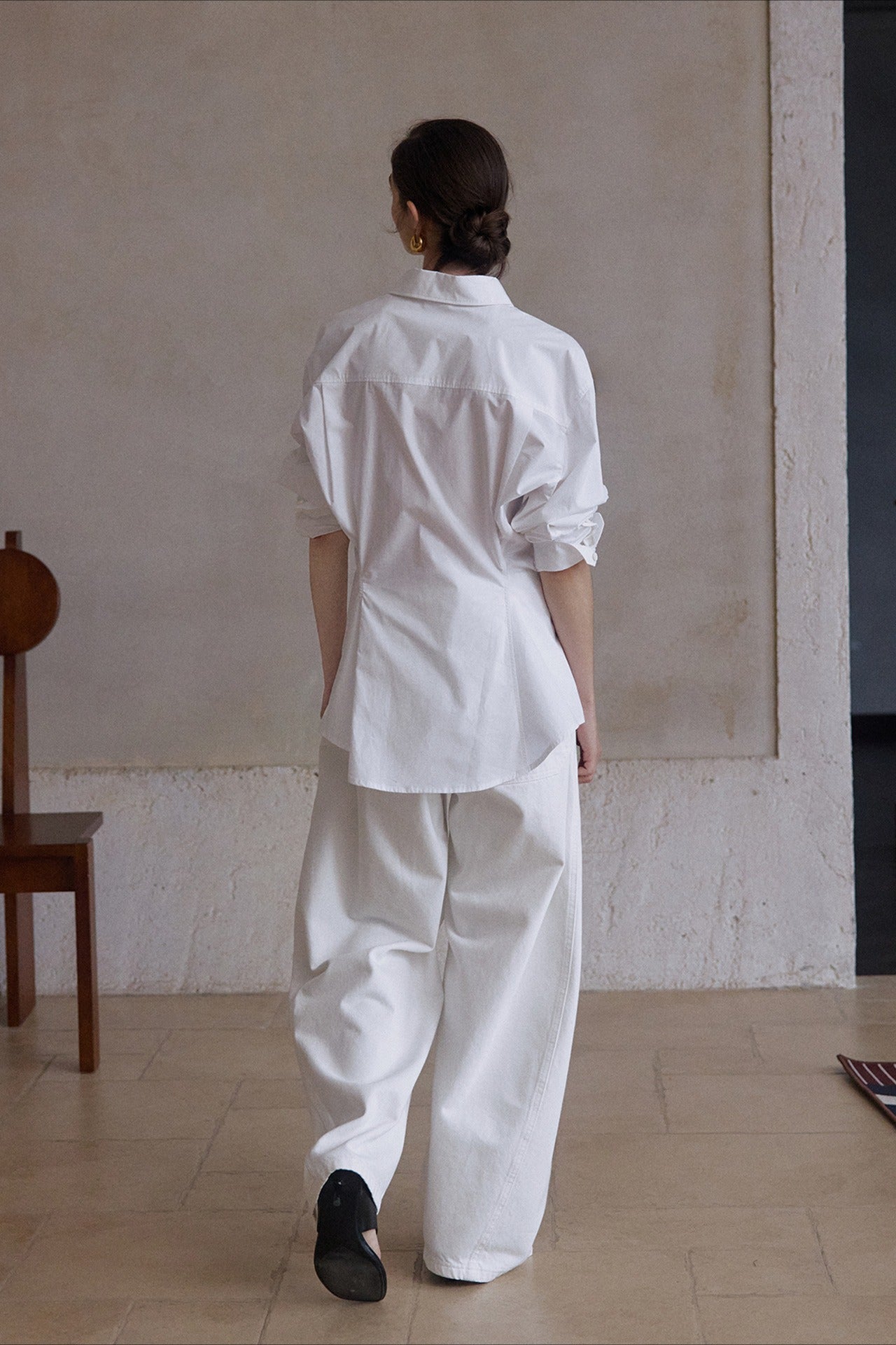 Camisa elegante con cintura fruncida, 100% algodón | 3 colores