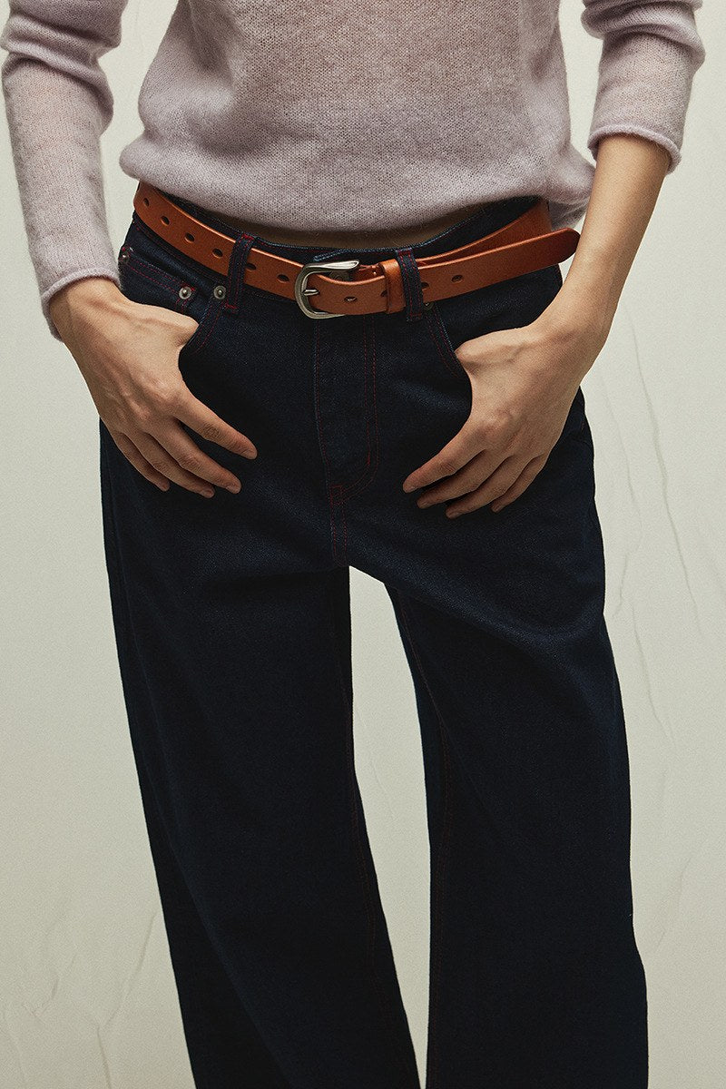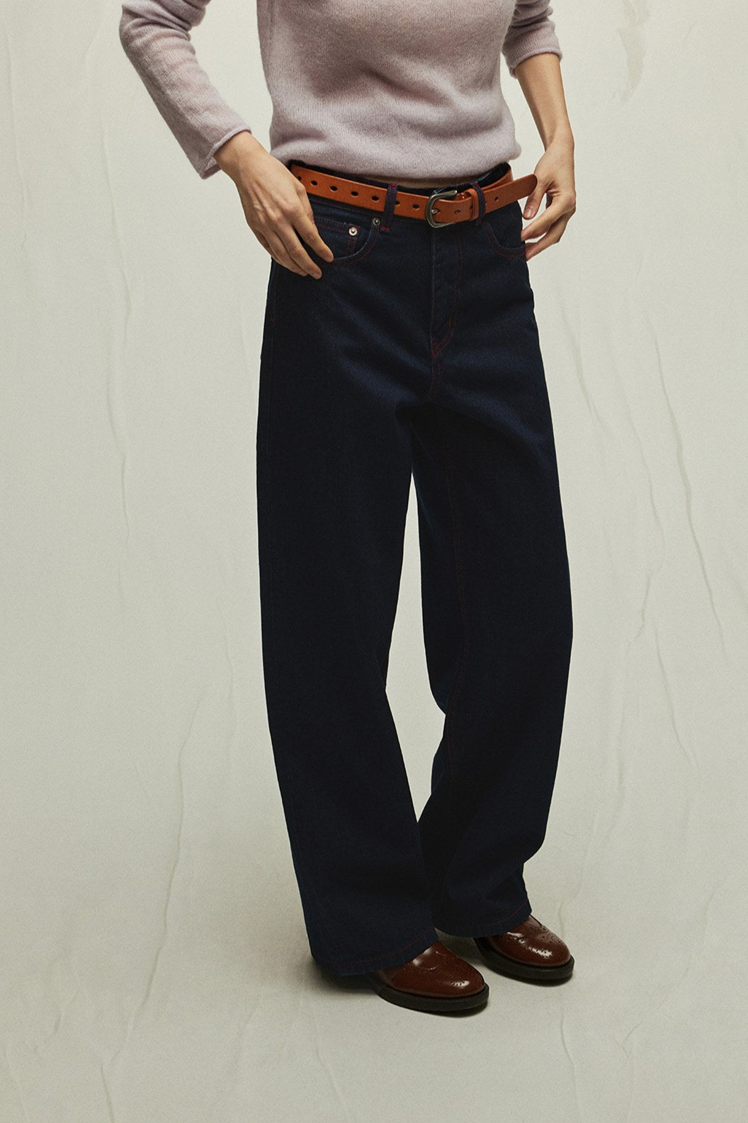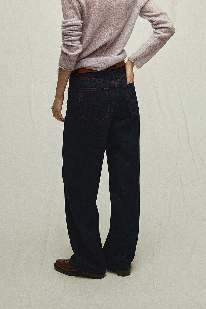 Vaqueros 100 % algodón con lavado vintage y costuras en contraste