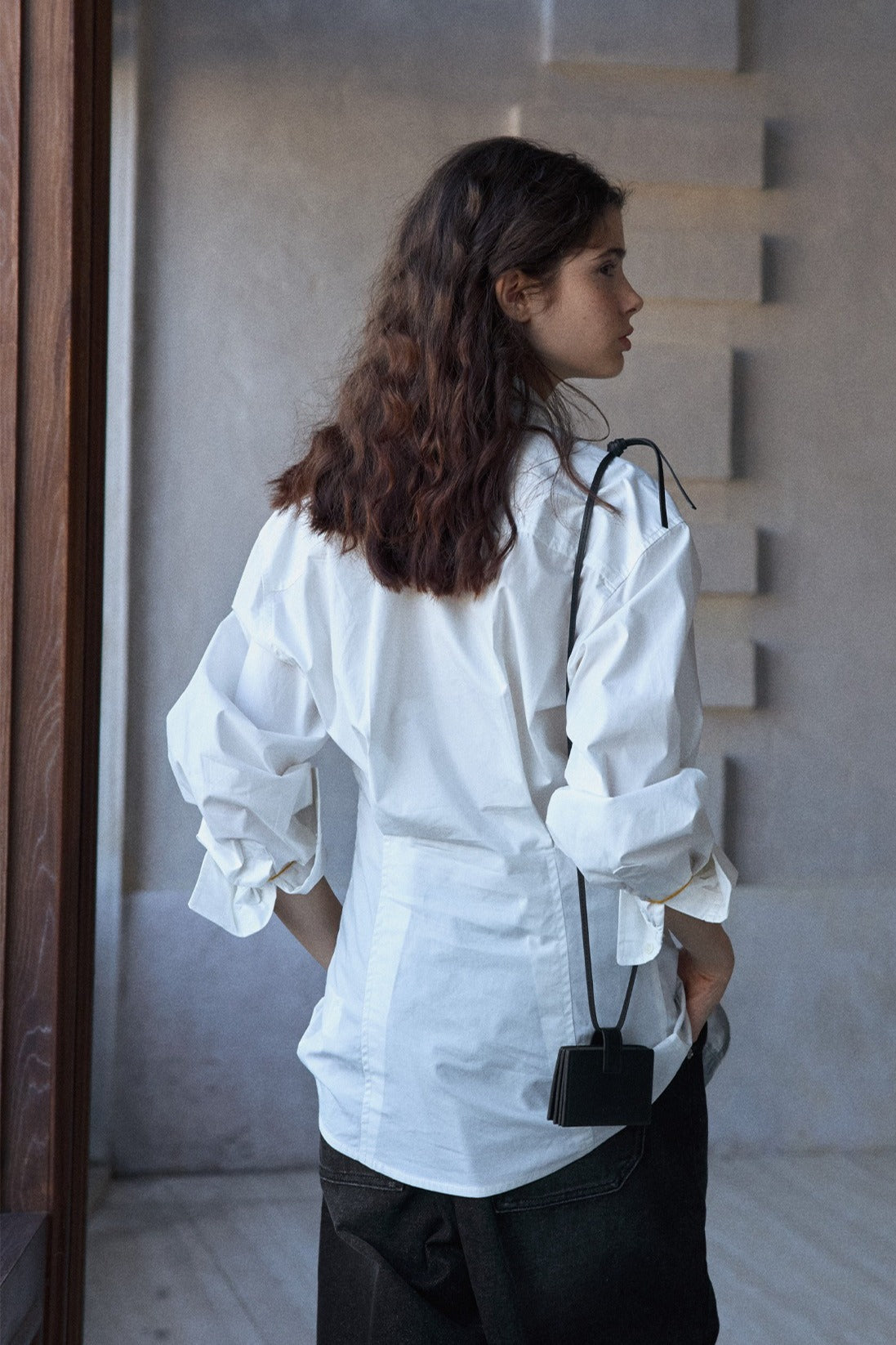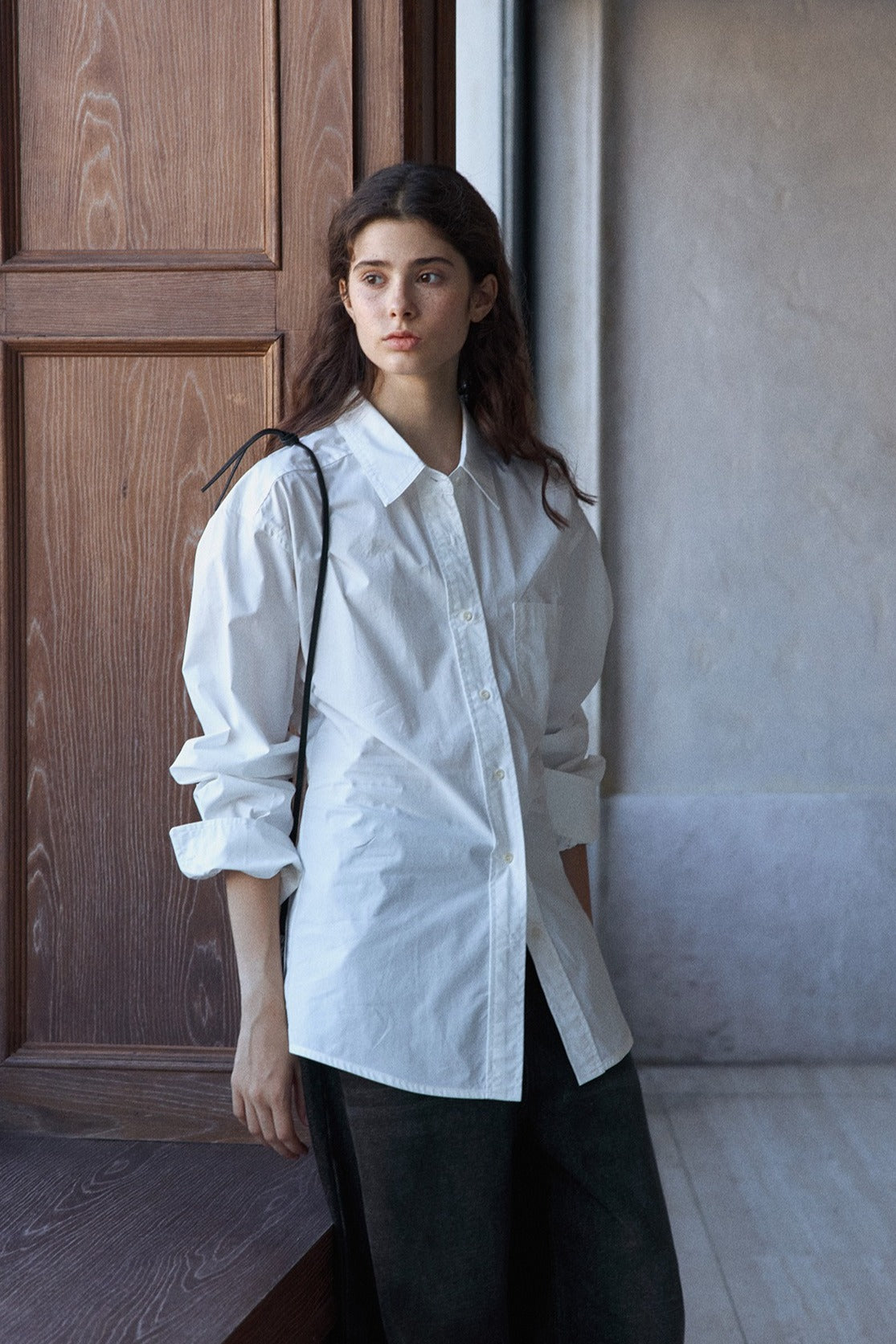 Camisa de algodón 100% con cintura ajustable y tapeta ancha