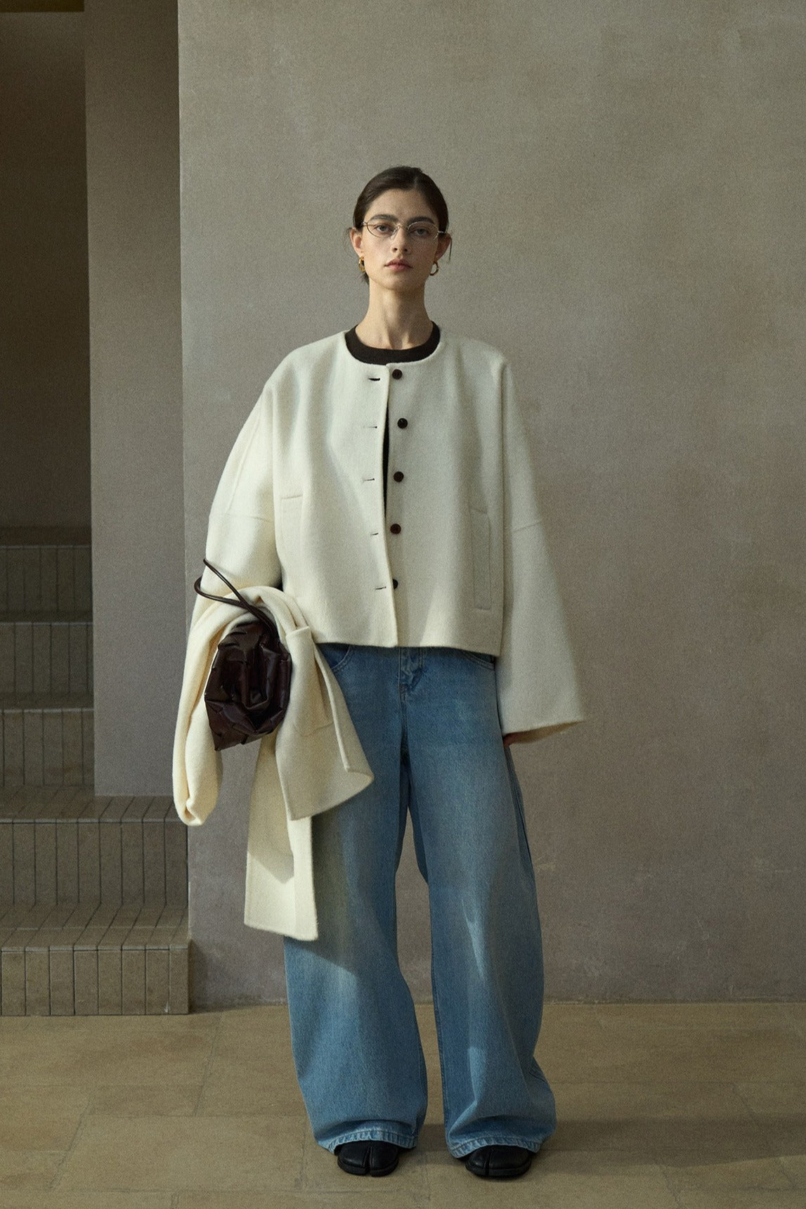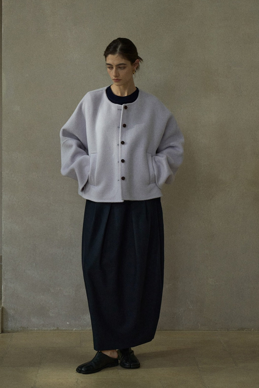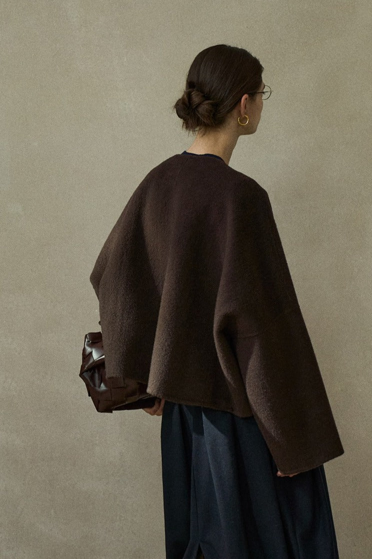 Chaqueta minimalista sin cuello, 100% lana | 3 colores